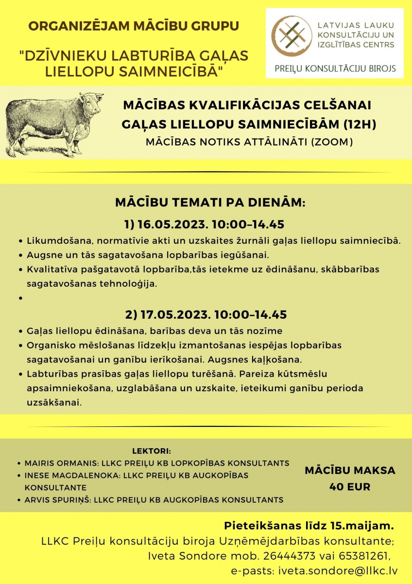 Preiļi ZOOM Tiešsaite | 16/17.05.2023 | Mācības | "Dzīvnieku labturība gaļas liellopu saimneicībā"