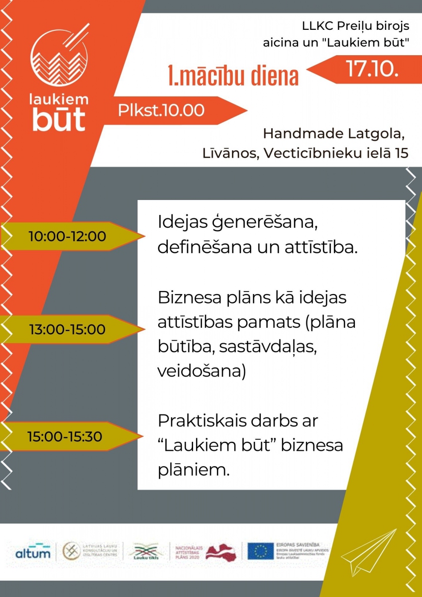 Pasākums tiek organizēts saskaņā ar Latvijas Republikas Zemkopības ministrijas un SIA „Latvijas Lauku konsultāciju un izglītības centrs” noslēgto līgumu nr. 2023/3 no 2023. gada 4. janvāra Aktivitāte „Atbalsts uzņēmējdarbības veicināšanai lauku teritorijās”