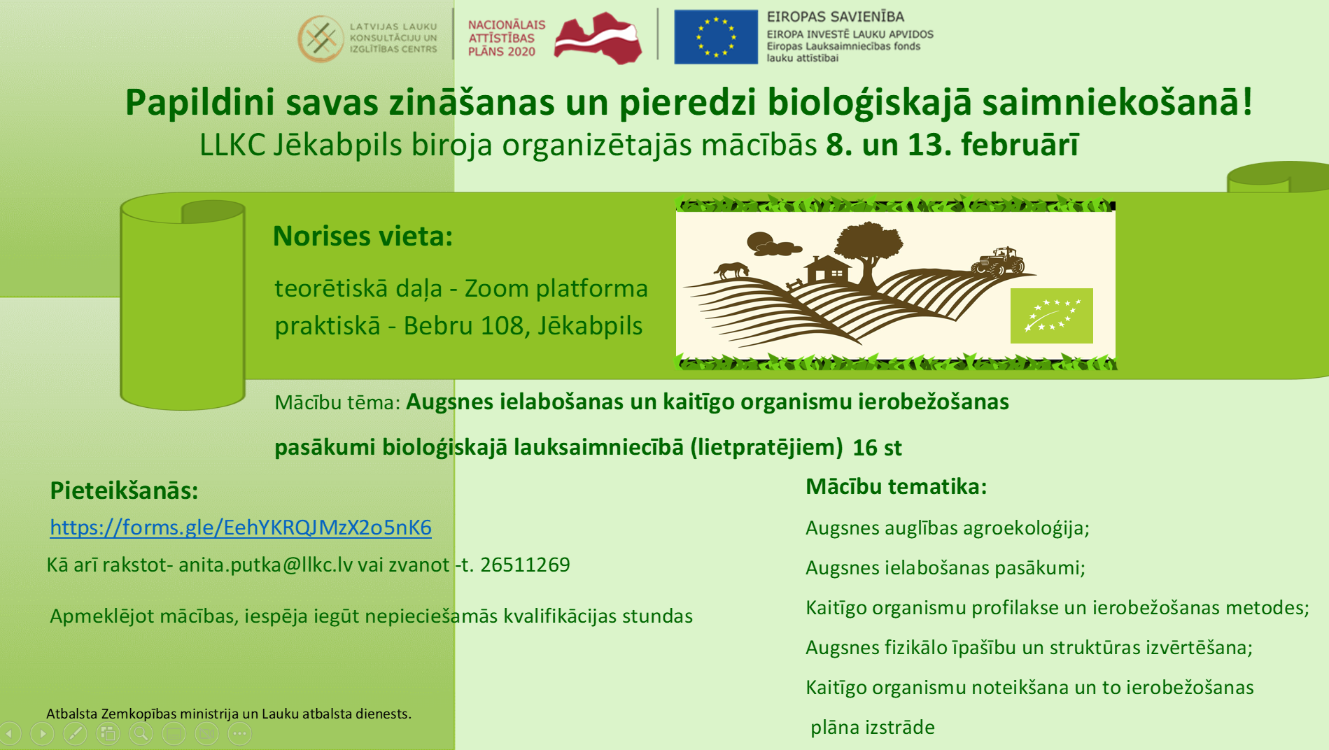 “Augsnes ielabošanas un kaitīgo organismu ierobežošanas pasākumi bioloģiskajā lauksaimniecībā (lietpratējiem) Laukaugi.