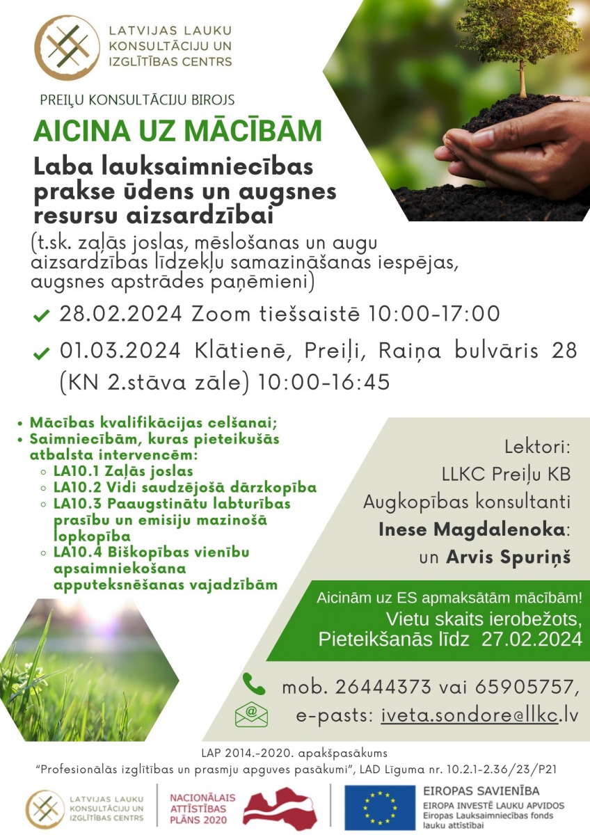 LLKC Preiļu birojs rīko mācības: "Laba lauksaimniecības prakse ūdens un augsnes resursu aizsardzībai"