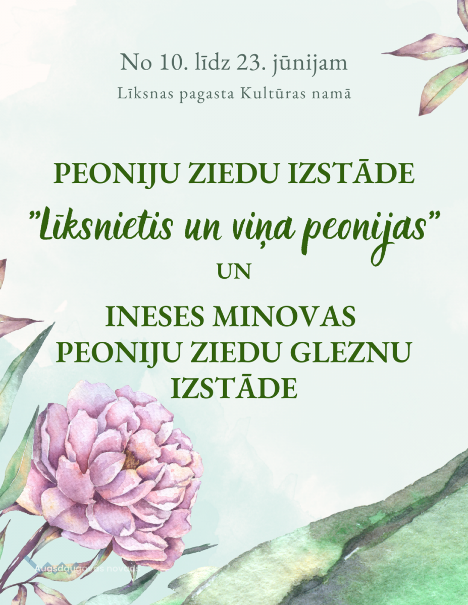 PEONIJU ZIEDU IZSTĀDE "LĪKSNIETIS UN VIŅA PEONIJAS" UN INESESMINOVAS PEONIJU ZIEDU GLEZNU IZSTĀDE.