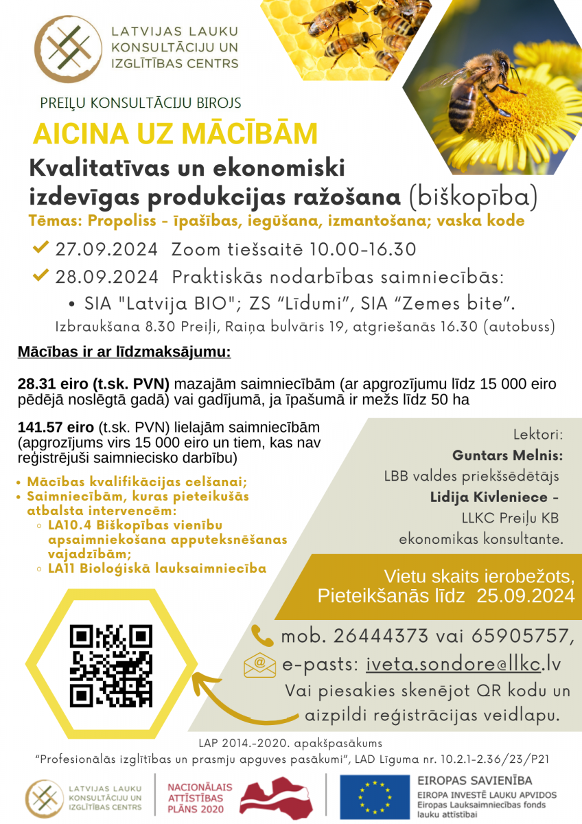 LLKC Preiļu birojs rīko mācības: Mācības "Kvalitatīvas un ekonomiski izdevīgas produkcijas ražošana" (biškopība)
