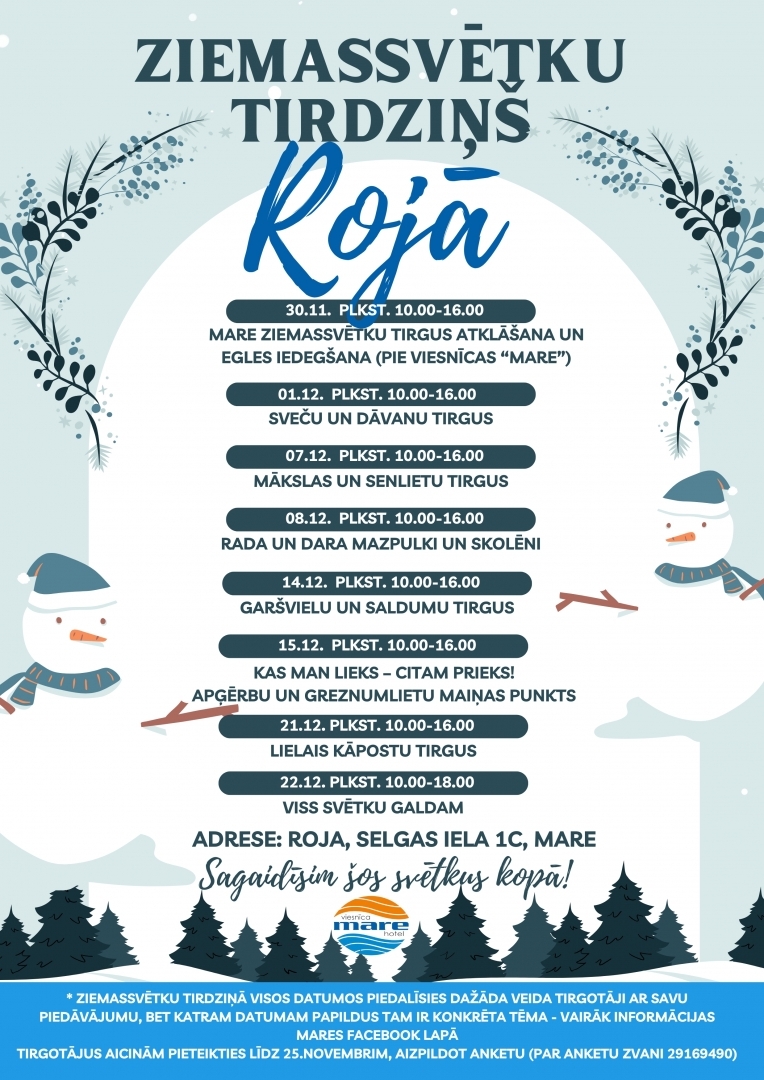 Aicinam uz Ziemassvētku pasākumiem Rojā 21. decembrī.