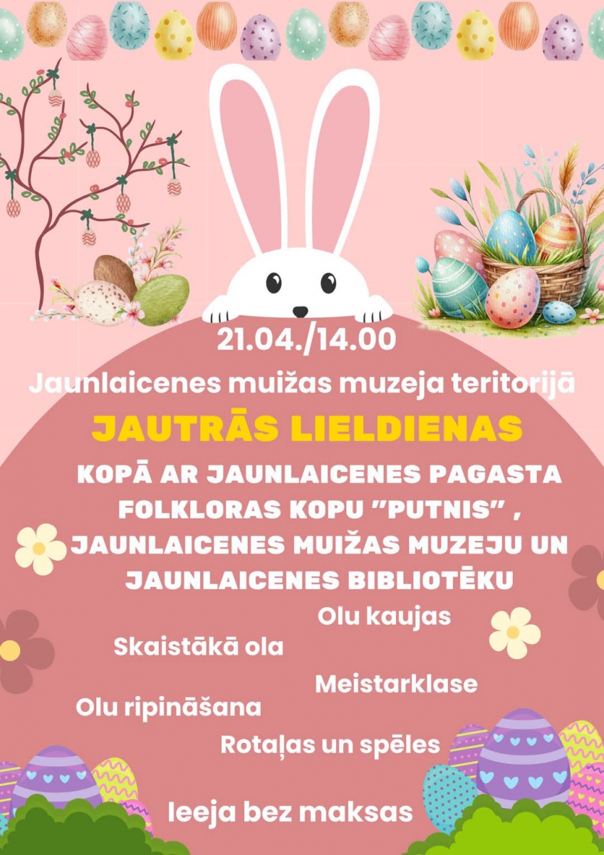 Lieldienu svinētāji Otrajās Lieldienās, 21.aprīlī, plkst.14:00, tiek gaidīti uz jautrībām Jaunlaicenes muižas muzeja teritorijā.