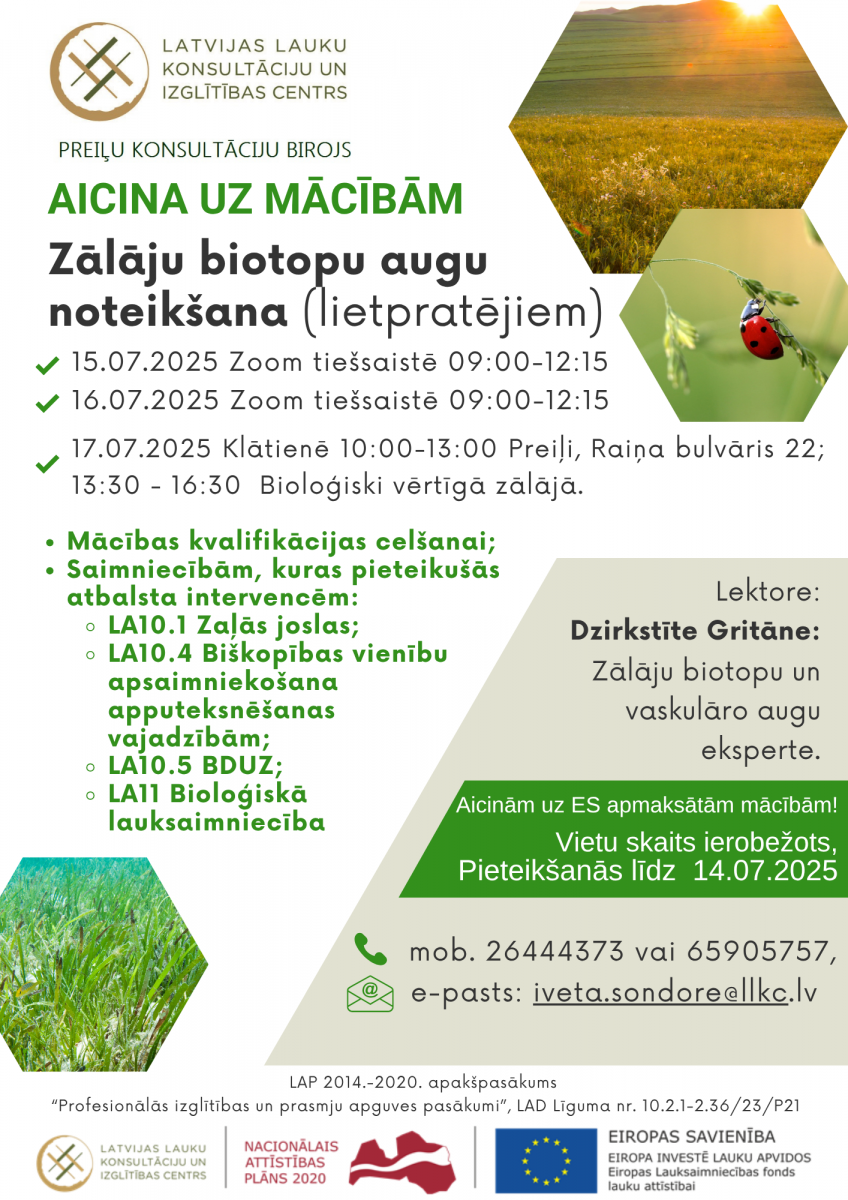 LLKC Preiļu konsultāciju birojs piedāvā mācības "Zālāju biotopu augu noteikšana" (lietpratējiem)