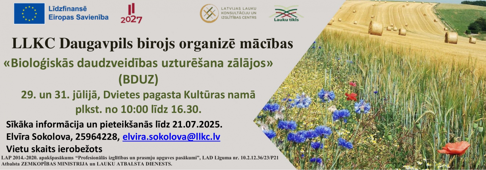 LLKC Daugavpils birojs rīko mācības: Mācības «Zālāju biotopu augu noteikšana (lietpratējiem)» (BDUZ)/ 16 stundas