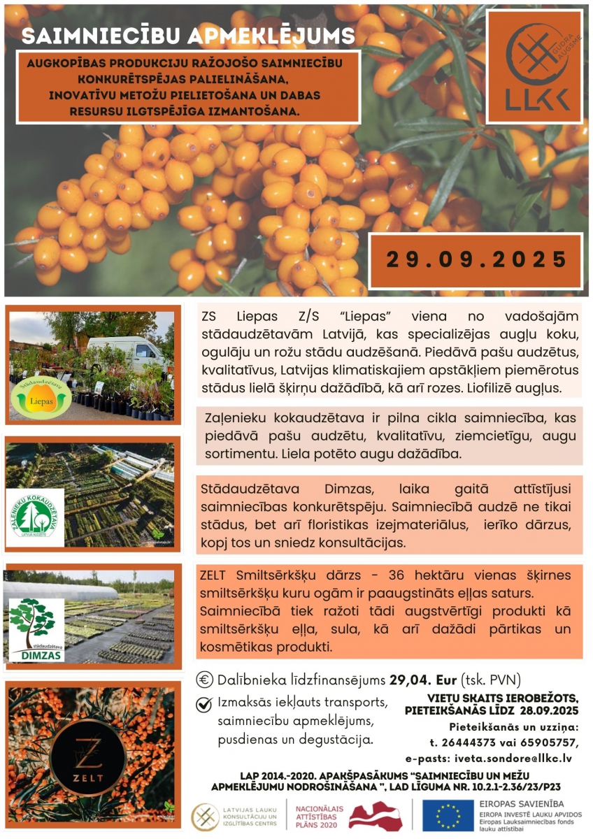 29.09.2025 | Preiļi | Saimniecību apmeklējums - ZS Liepas, Z/S Zaļenieku kokaudzētava, Stādu audzētava "Dimzas", ZELT smiltsērkšķu dārzs