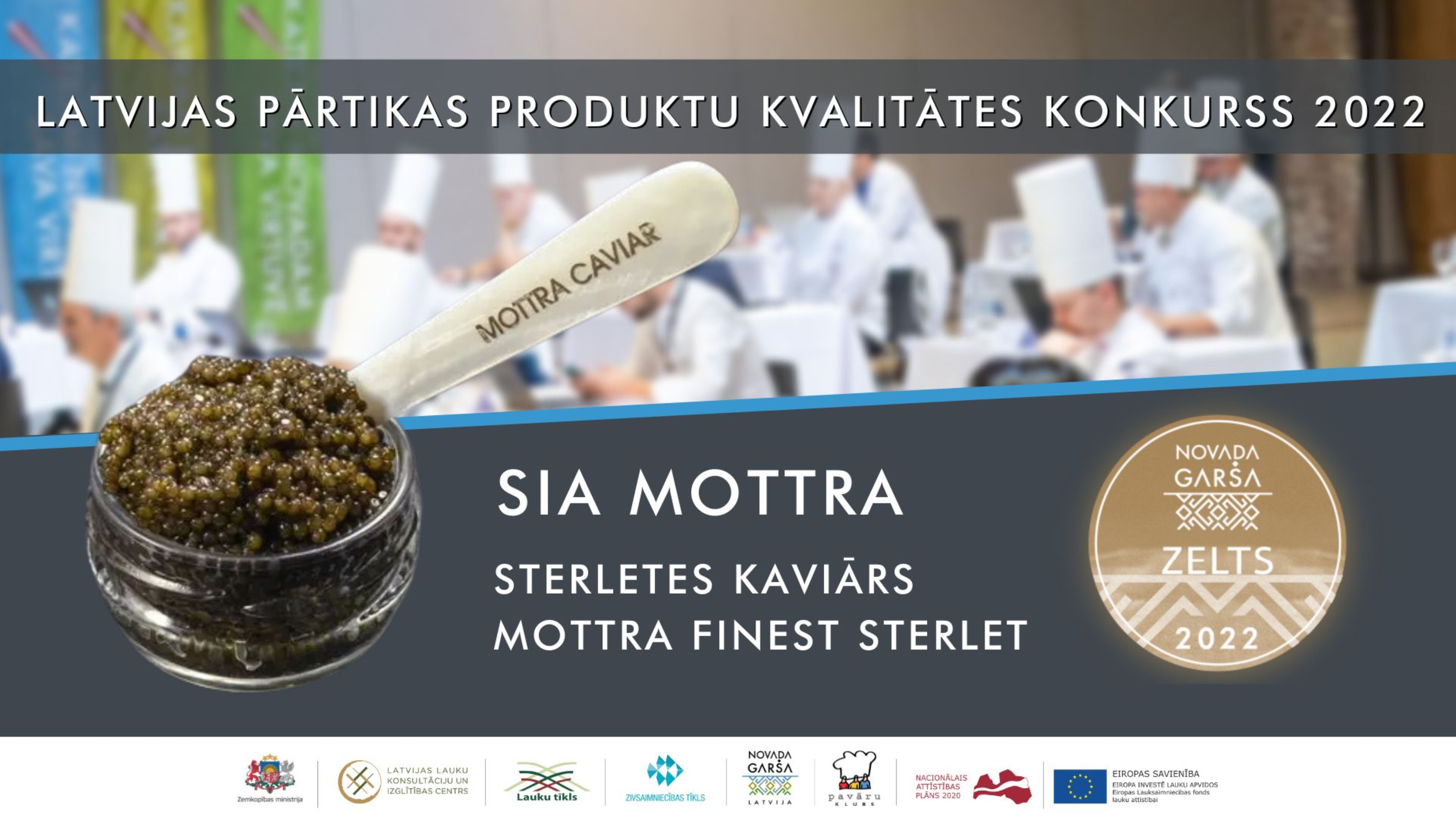 - SIA “MOTTRA” konkursā startēja ar vairākiem produktiem, no kuriem divi ieguva godalgas – zelta medaļu sterletes kaviārs MOTTRA Finest Sterlet, bronzas – karsti kūpināts Āfrikas sams MOTTRA. Šo un arī pārējo uzņēmuma ražoto iespējams iegādāties gan uz vietas ražotnē, kas atrodas Ķekavas novadā (“Lāmiņas”, Katlakalns, Ķekavas pagasts), iepriekš sazinoties pa tālruni 29234974, gan SKY, Promo cash&carry, Rimi lielveikalos.