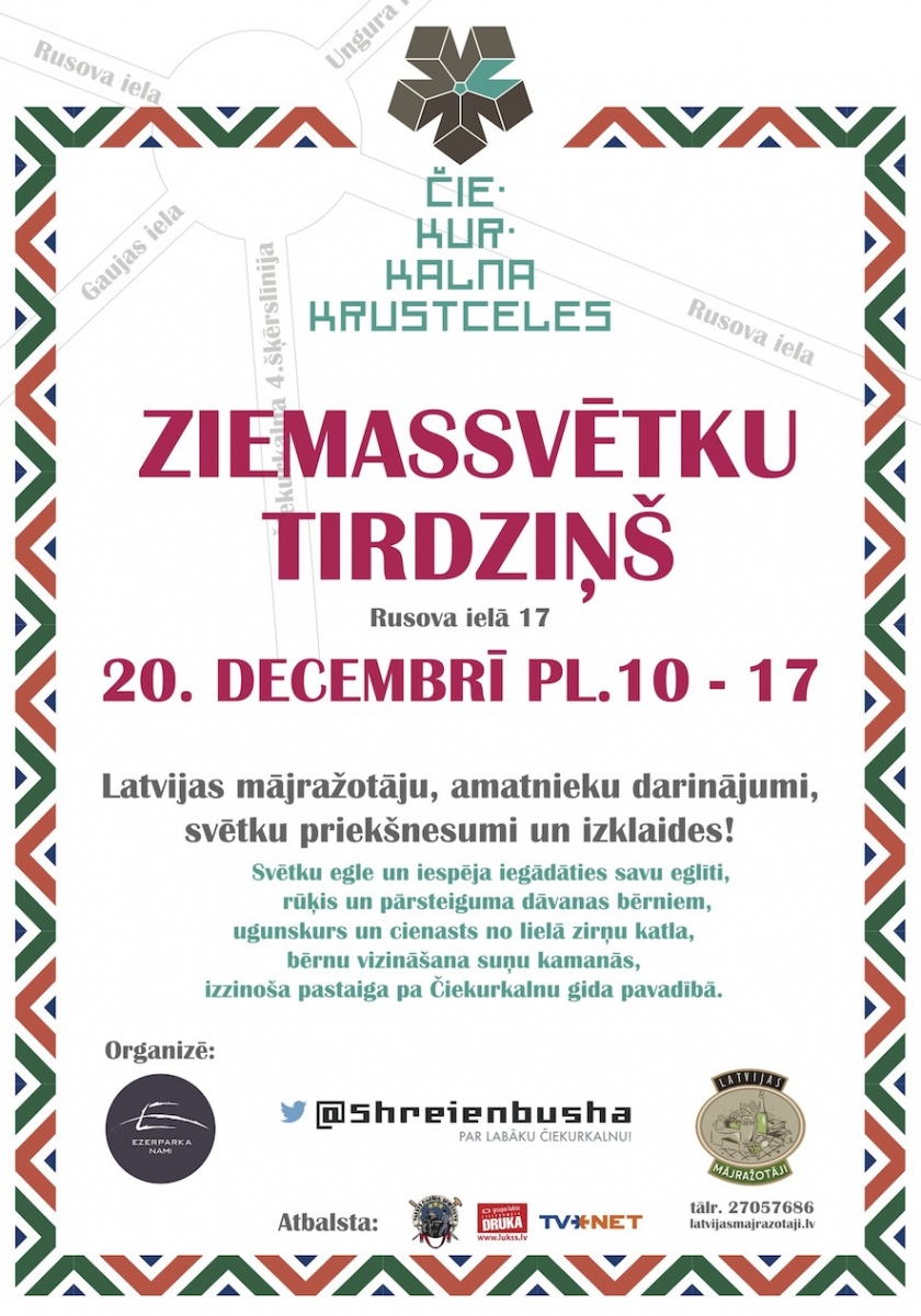 Latvijas Mājražotāju un Mazo ražotāju Informācijas un Atbalsta Biedrība, sadarbībā ar Ezerparka Namiem rīko vēl nebijušu pasākumu Čiekurkalna un tuvējās apkārtnes iedzīvotājiem – Ziemassvētku tirdziņu.