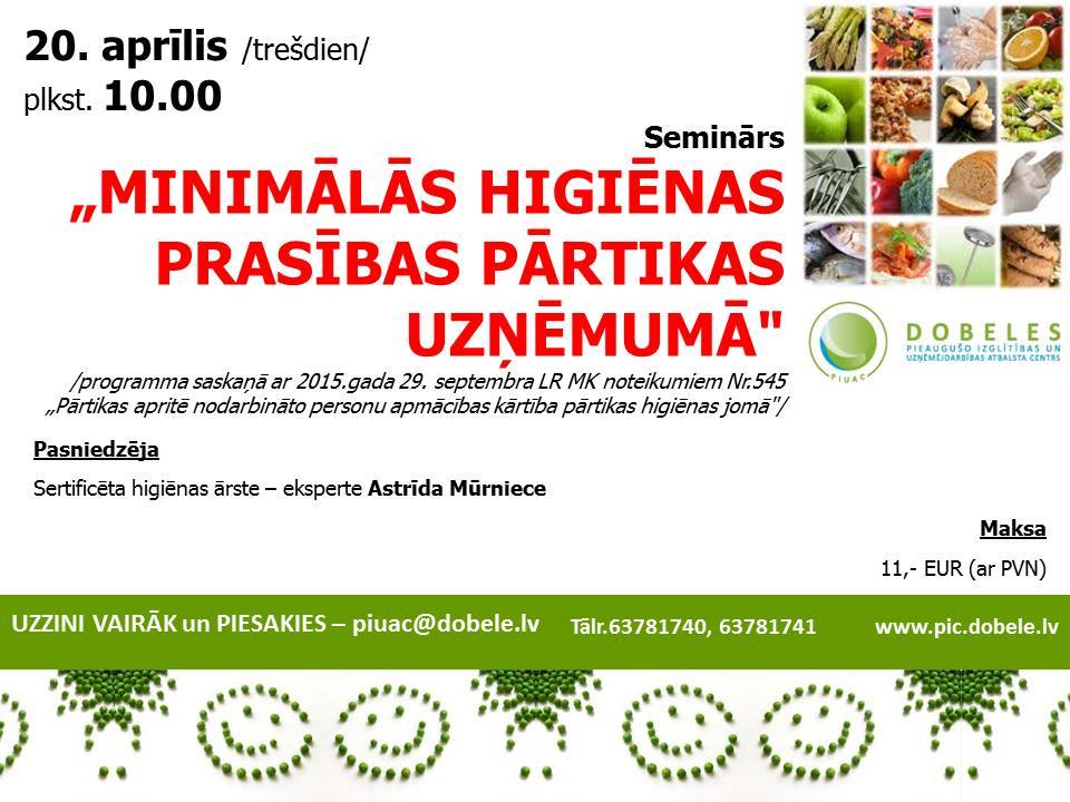Seminārs Dobelē "Minimālās higiēnas prasības pārtikas uzņēmumā"