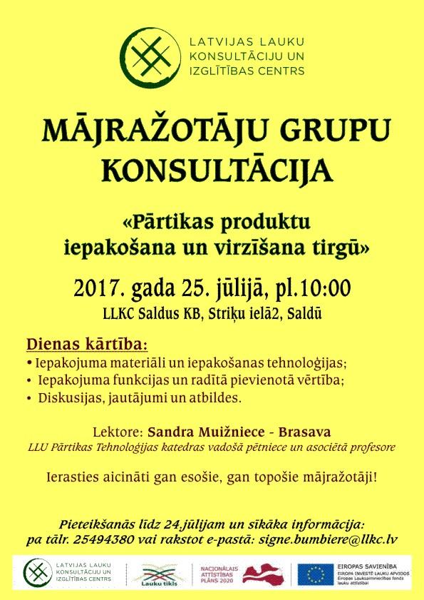 Aicinām Jūs piedalīties LLKC Saldus konsultāciju biroja organizētajā mājražotāju tikšanās-seminārā, kas š.g. 25.07. (trešdien), plkst. 10:00 notiks Saldus konsultāciju biroja telpās, Striķu ielā 2.