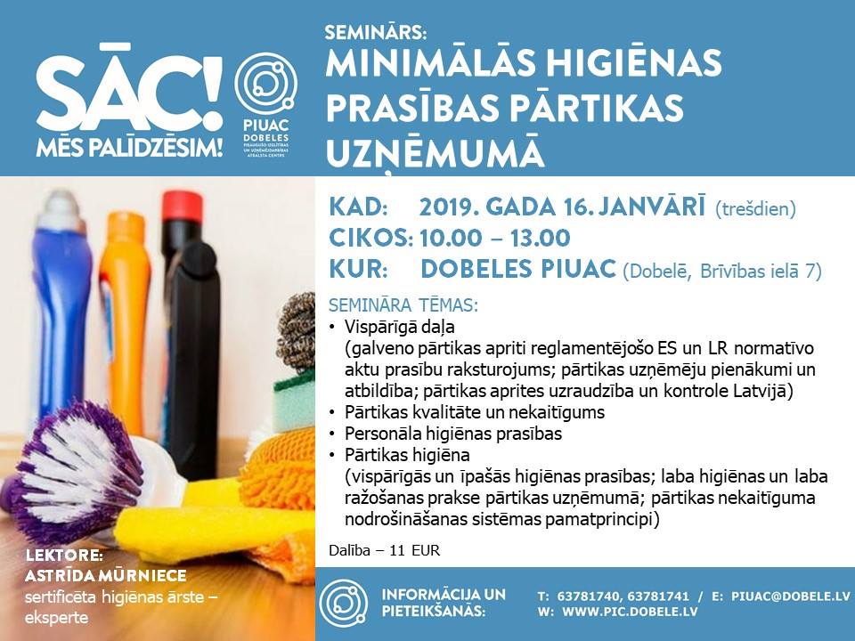 Datums: 16. Janvāris, 2019Reģions: ZemgaleVieta: Dobeles Pieaugušo izglītības un uzņēmējdarbības atbalsta centrsAdrese: Skatīt karti lielākā izmērā Nozare: PārtikaKontaktinformācija: Dobeles PIUAC, Tālr. 63781740,63781741 , e-pasts piuac@dobele.lvReģions filtram: Dobeles novads