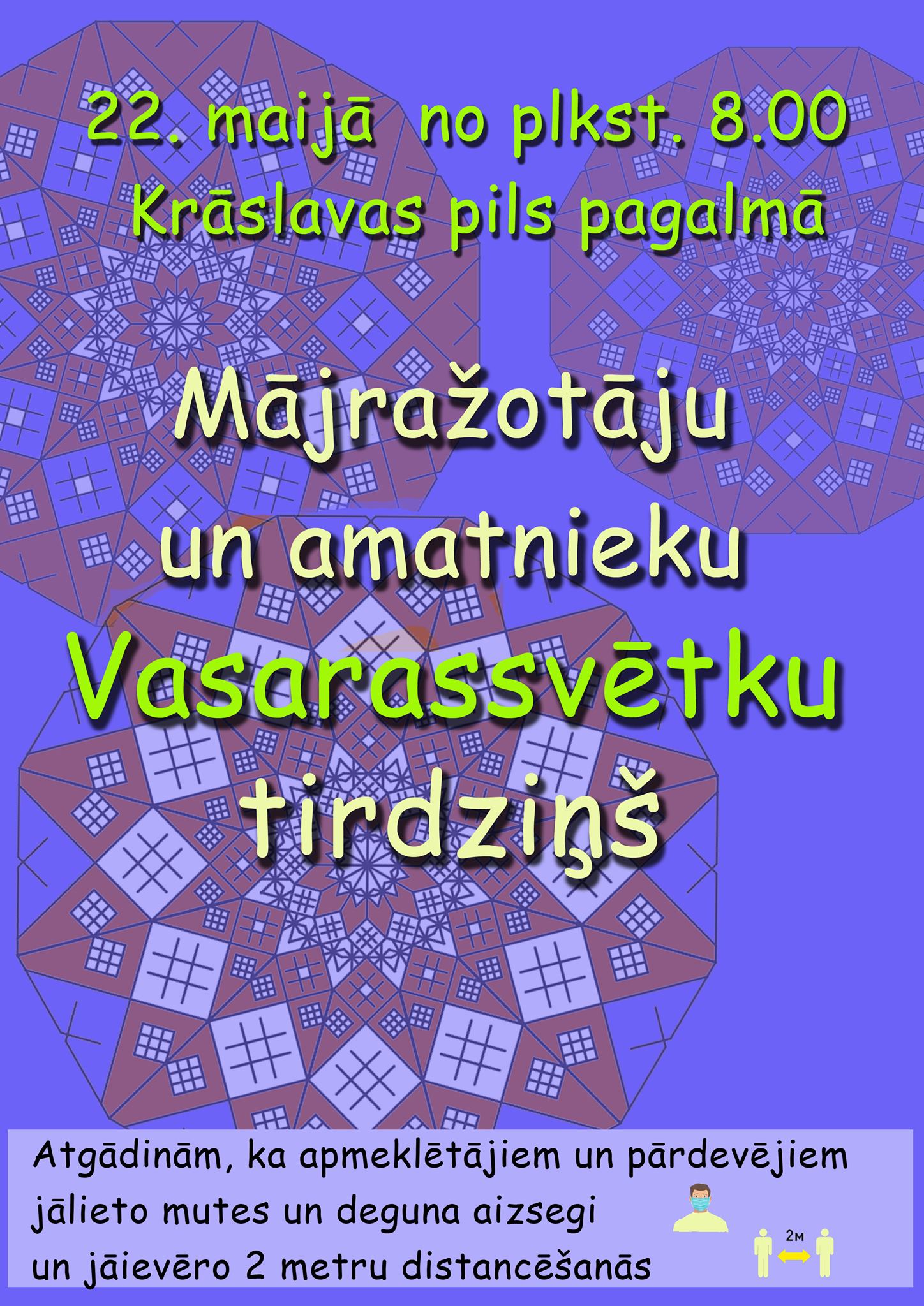 22.maijā no plkst. 8:00 Krāslavas pils pagalmā - Mājražotāju un amatnieku Vasarassvētku tirdziņš.