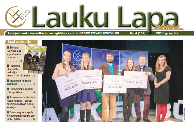 Iznācis LLKC informatīvā izdevuma “Lauku Lapa” aprīļa numurs. Tajā nosaucam LLKC rīkotā konkursa “Laukiem būt!” 2018. gada uzvarētājus un īsumā iepazīstinām ar jauniešu biznesa idejām, kuru īstenošanai tika piešķirtas naudas balvas.