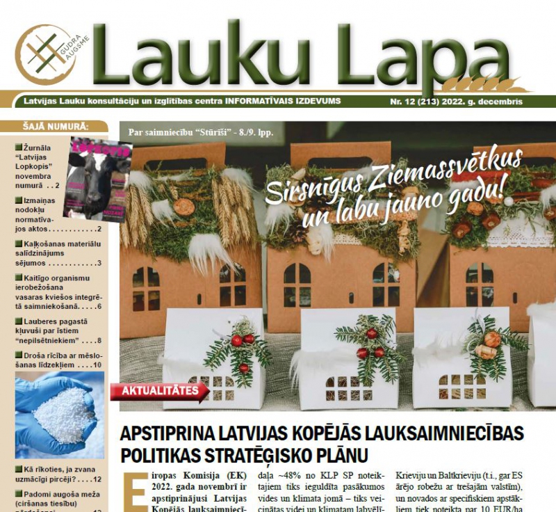 Informatīvā izdevuma “Lauku Lapa” decembra numurā lasiet par apstiprināto Latvijas Kopējās lauksaimniecības politikas Stratēģisko plānu.