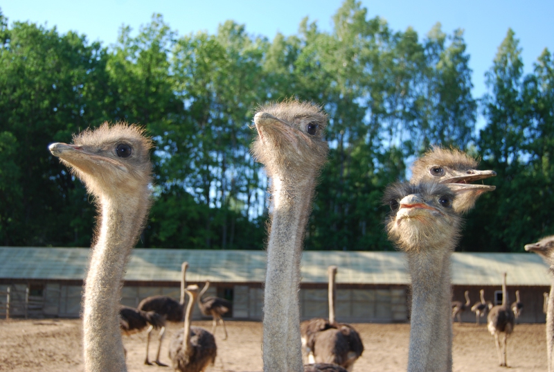 SIA “Nornieki” uzmanību piesaista aplokos esošie strausi un daudz raibu kaziņu jaunuzceltā modernā novietnē. Saimnieks Pēteris Gobzems 2011. gadā iegādājās pirmās sešas strausu ģimenes, kuras jau bija izaudzētas Latvijas apstākļos. Doma esot bijusi pamēģināt, lai redzētu, kas sanāk. Attīstības rādītāji un tūristu apmeklējumi liecina, ka ir izdevies. Mūsu saimniecības apmeklējuma dienā paši saimnieki nebija sastopami, bet darbiniece Baiba  iepazīstināja brauciena dalībniekus ar strausu audzēšanu, izstāstot visu attīstības ciklu no olas līdz burgeram uz galda. Tiekam brīdināti, lai putniem netuvojamies. Strausiem lielā ziņkārībā izdodoties ļoti ātri apmeklētāju telefonos ”uzinstalēt zirneklīti”, jo knābiens ir zibenīgi ātrs un stiprs. Katras strausu ģimenes aploks ir pietiekami liels, jo tiem jānodrošina kustības. Pretējā gadījumā ciestu gremošanas sistēma. “Nornieku” saimniecības viens no biznesiem ir strausu gaļas audzēšana. Tādēļ ir svarīga katra izdētā strausu ola, kuras tiek piefiksētas un uzraudzītas novērošanas kamerās. Olas tiek liktas inkubatorā un pēc tam attiecīgi pārvietotas, kā paši saka, uz dzemdību zāli. Arī mēs redzējām, kā mazais putnēns ir atrubinājis olas čaumalu un pieņemas spēkā līdz pilnīgam izšķilšanās brīdim. Putnēnus audzina līdz viena gada vecumam un tālāk strausu gaļa tiek piegādāta restorāniem un izmantota pašu saimniecības teritorijā izveidotā restorānā, kurā pusdienot piedāvā apmeklētājiem. Saimniecībā viesojoties, redzējām daudz citu interesentu, kaut tā bija darbdiena. Otra šīs saimniecības nozare ir kazu audzēšana. Apmeklētāji labprāt pavada laiku aplokos, samīļojot kazlēnus un fotografējoties. Vērtējot šīs saimniecības ieguldīto darbu, var piekrist darbinieces teiktajam, ka viss sanāk, ja uzdrošinās un nebaidās.