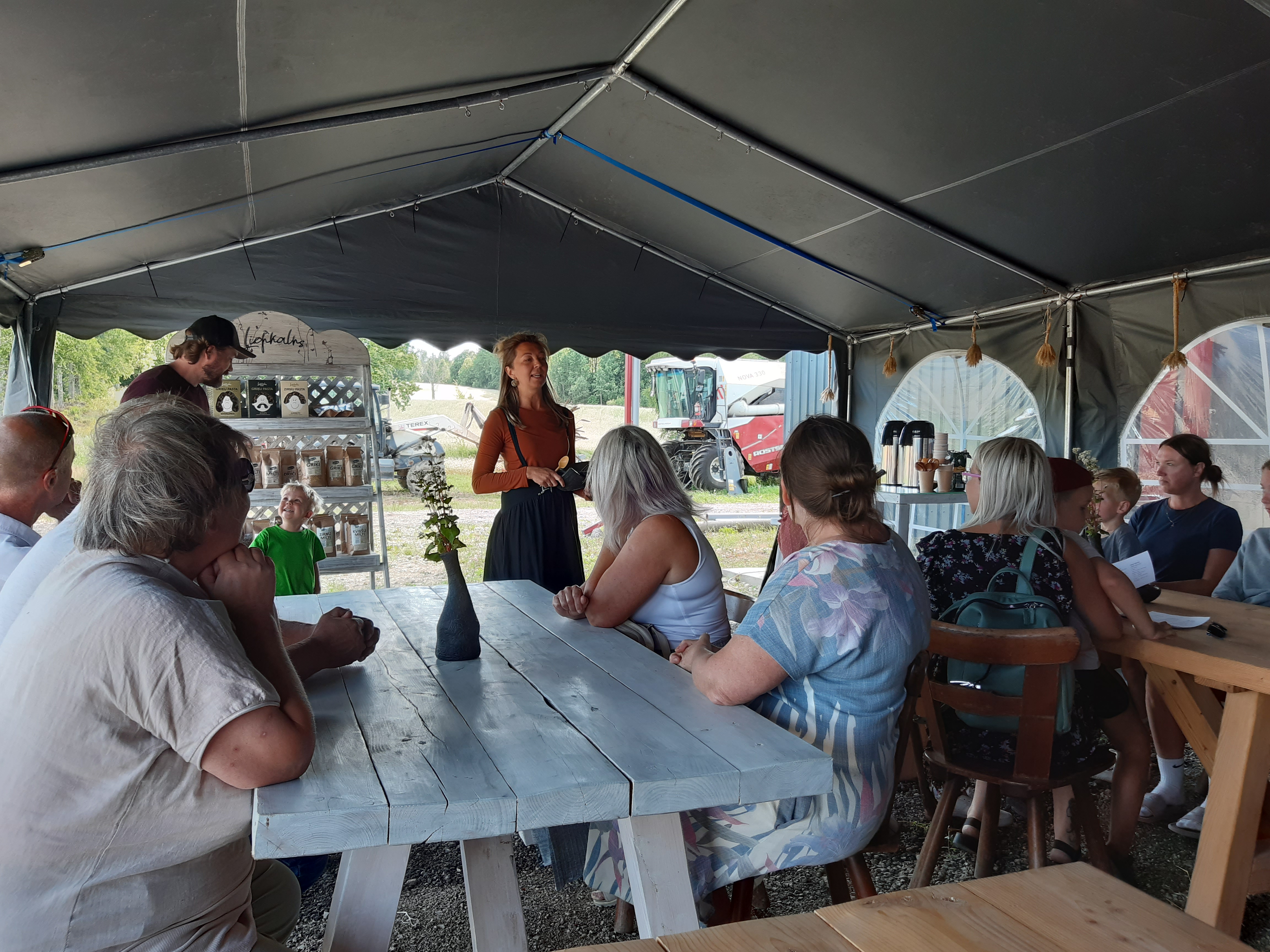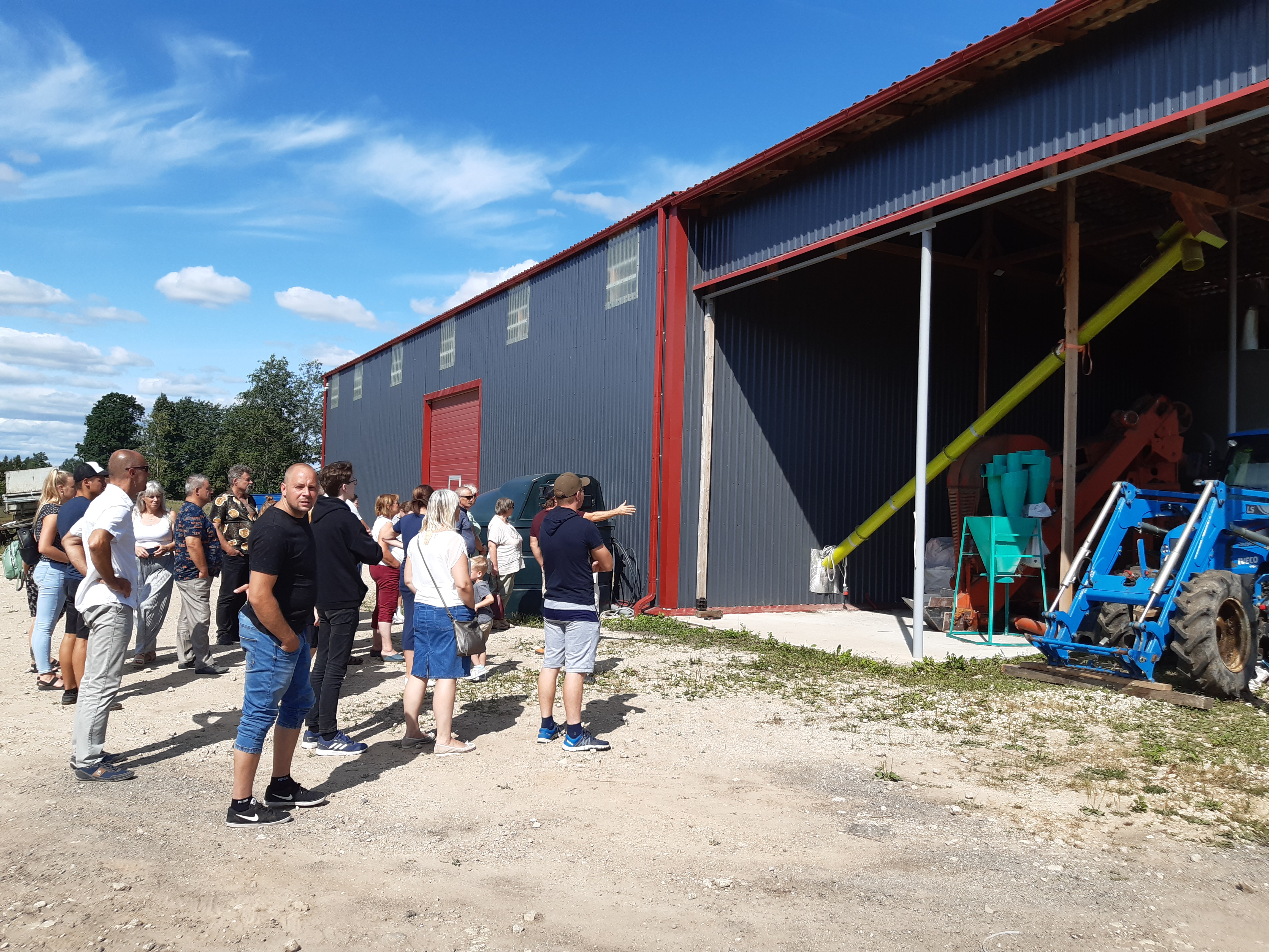 Brauciena noslēgumā devāmies uz Ilzeskalna pagastu, kur apmeklējām bioloģisko zemnieku saimniecību “Liepkalns”. Sagaidīja mūs saimniecības īpašnieks Aleksejs Daņilovs. Savu stāstījumu Aleksejs sāka ar to, ka viss, kas saimniecībā ir – graudu uzglabāšanas angārs, graudu šķirotājs, tehnika, kaltes – iegādāts LAP projektos. Lai uzņēmums gūtu peļņu, 2019. gadā iesniegts projekts biedrības “Rēzeknes rajona kopienu partnerība” par graudu pārstrādes ceha izveidi. Tas tika apstiprināts, īstenots, un saimniecība uzsāka pārtikas produktu pārstrādi ar inovatīvu tehnoloģiju pielietošanu. Tiek ražoti zaļo griķu produkti – milti, makaroni, diedzēti un kaltēti griķi, no zirņiem – milti, makaroni.