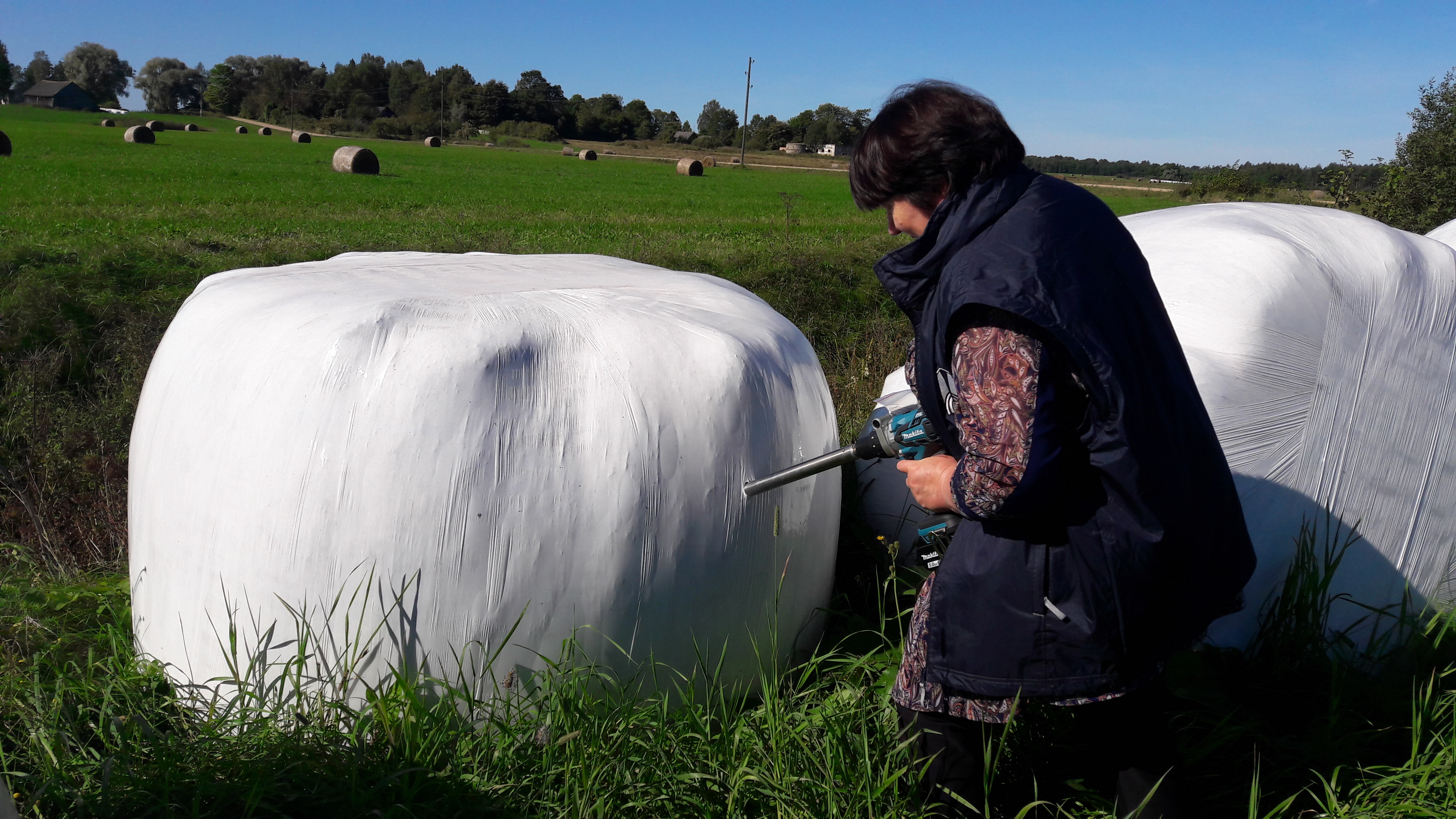 Trešās tikšanās reizes tēma bija „Sagatavotās lopbarības kvalitāte un to raksturojošie svarīgākie rādītāji”, kad interešu grupa viesojās Preiļu novada Saunas pagasta Silvijas Romanovskas saimniecībā. Diskutējām un dalījamies pieredzē par lopbarības sagatavošanu šīs vasaras savdabīgajos klimatiskajos apstākļos. Lopbarību sākotnēji novērtējam organoleptiski pēc krāsas, smaržas, piesārņojuma, mitruma, botāniskā sastāva u. c. Laboratoriski iespējams noteikt daudzus rādītājus, piemēram, sausnu, proteīnu, ADF, NDF, NEL, Ca, P, koppelnus, pH, skābes u. c. Saimniecībā tika apskatītas ganības un zālāji, no skābbarības rituļiem tika noņemts paraugs analīzēm.