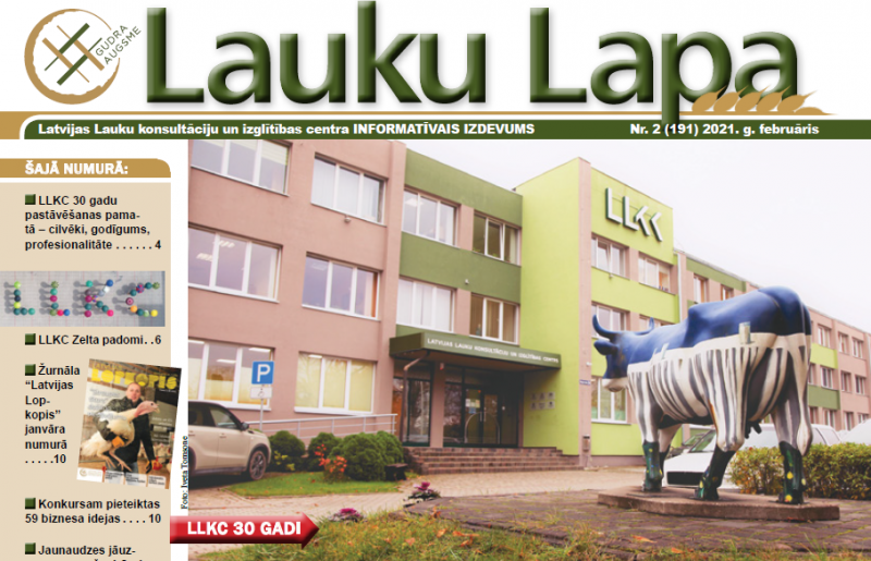 Iznācis informatīvā izdevuma “Lauku Lapa” februāra numurs. Tas galvenokārt veltīts LLKC dibināšanas 30 gadu jubilejai. Valdes priekšsēdētājs Mārtiņš Cimermanis stāsta par centra izaugsmi un savām darba gaitām tajā. Ar savām atmiņām dalās centra dibināšanā stratēģiski svarīgas personības, izsakot vēlējumus arī turpmākajam darbam. Savukārt LLKC reģionālo biroju vadītāji sniedz “Zelta padomus” sadarbībai ar klientiem un veiksmīgam darbam kopumā.