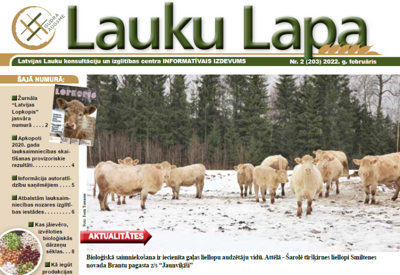 Informatīvā izdevuma “Lauku Lapa” februāra numurā Latvijas Lauku konsultāciju un izglītības centra projektu vadītāja Lāsma Ozola sagatavojusi plašu materiālu, skaidrojot jaunās ES regulas par bioloģisko ražošanu un bioloģisko produktu marķēšanu noteiktās izmaiņas augkopībā un lopkopībā.