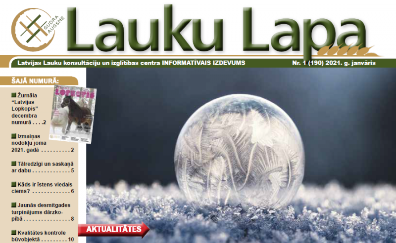 Iznācis informatīvā izdevuma “Lauku Lapa” janvāra numurs. Tajā par to, kā LLKC paplašina tālmācības programmas, kas ir īpaši aktuāli šajā laikā, kad klātienes mācības nav iespējamas.