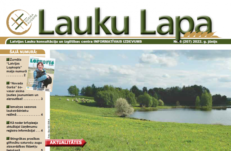 Informatīvā izdevuma “Lauku Lapa” jūnija numurā informējam par atbalsta iespēju mazajām lauku saimniecībām. Grāmatvedības sadaļā – kā pielietot laukstrādnieku nodokļa atvieglojumus, kā arī izmantot brīvpieeju Uzņēmu reģistra informācijai.
