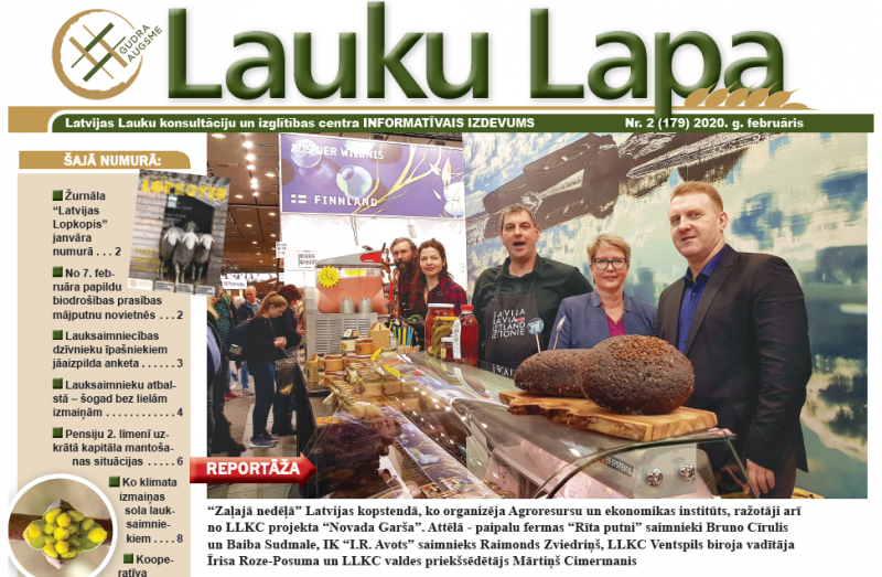 Iznācis LLKC informatīvā izdevuma “Lauku Lapa” februāra numurs. Tajā lasāma reportāža par starptautisko pārtikas, lauksaimniecības un dārzkopības izstādi-gadatirgu “Zaļā nedēļa” Berlīnē, kurā piedalījās arī Latvijas ražotāji.