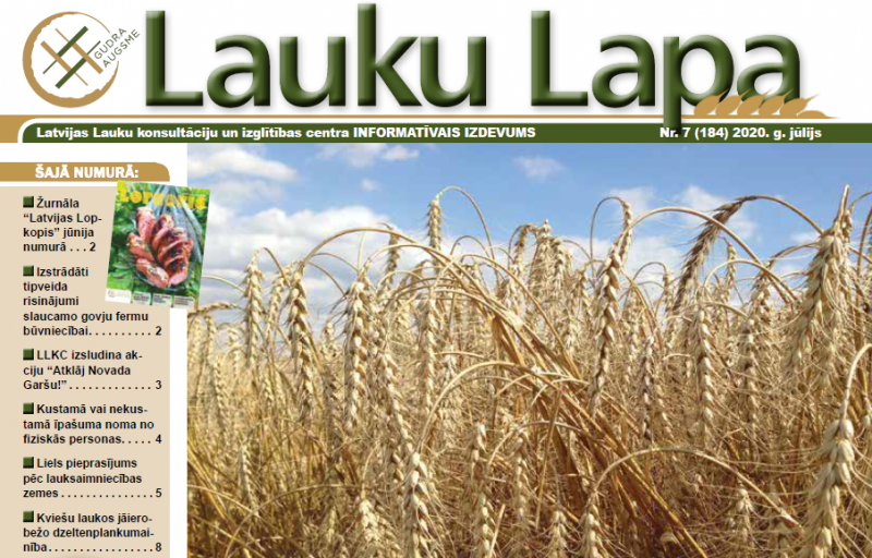 Iznācis LLKC informatīvā izdevuma “Lauku Lapa” jūlija numurs. Tajā plašs materiāls par graudkopības ekonomisko analīzi. Pieejama informācija par jauno Latvijas kulinārās apceļošanas akciju “Atklāj Novada Garšu!”