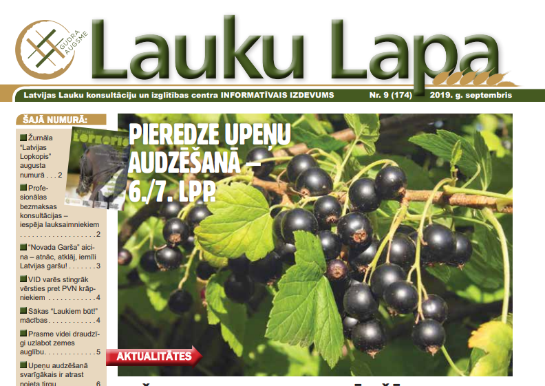 Iznācis LLKC informatīvā izdevuma “Lauku Lapa” septembra numurs. Tajā informācija par centra augkopības speciālistu veiktās ražas prognozes rezultātiem, kas ir iepriecinoši.