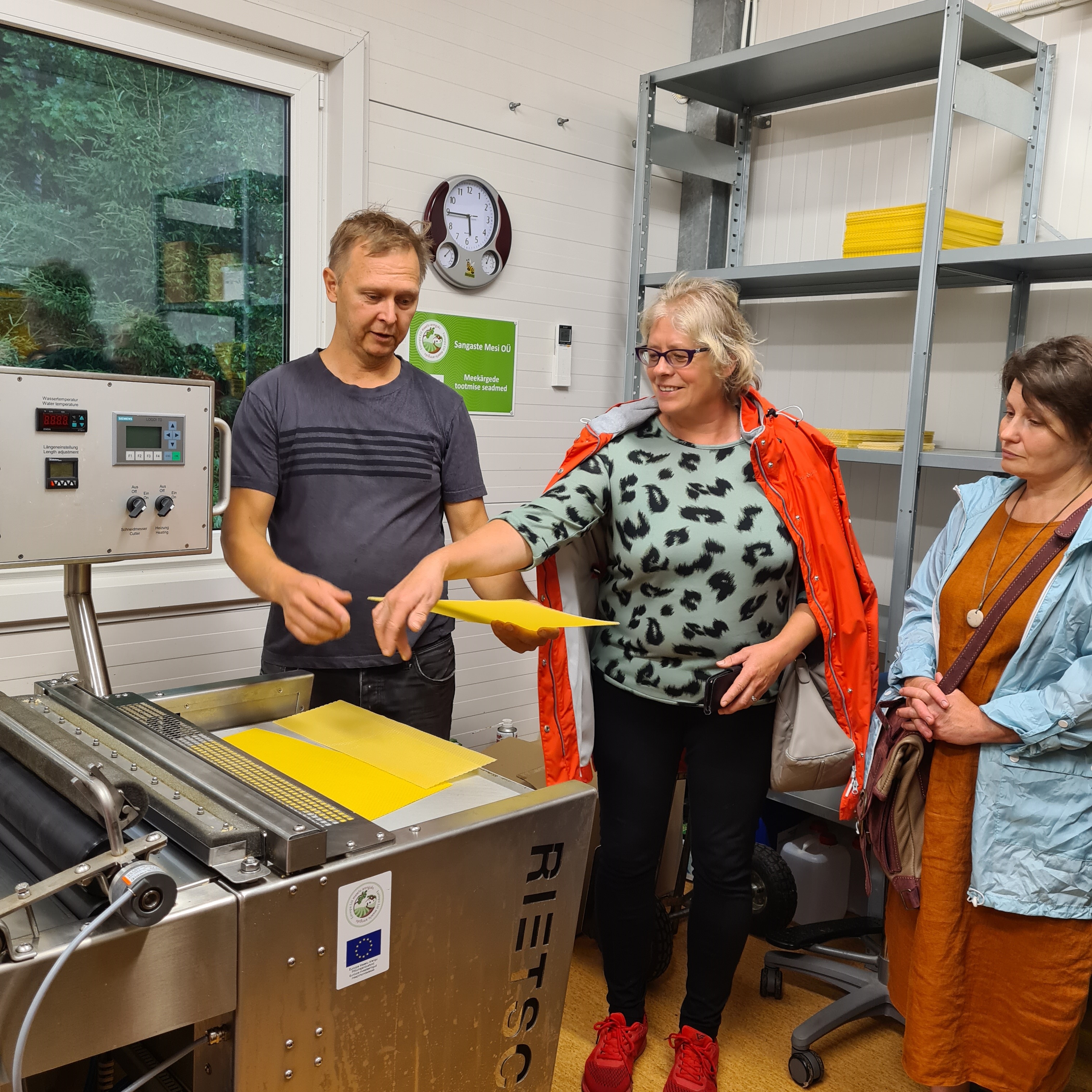 Nākamā tika apmeklēta “OÜ Sangaste mesi” – biškopības saimniecība, kas ražo medu un dažādus bišu produktus un maisījumus. Atrodas Sangastē, Valgas apriņķī. Ar biškopību nodarbojas jau vairākās paaudzēs, kad 1966. gadā Sangastes virsmežniecībā Reina Mānistes vecāki kļuva par biškopjiem. Tagad saimniecībā ir 400 bišu saimes, un iegūto medu pārstrādā un gatavo astoņu veidu medus maisījumus, kā arī kausē vasku un gatavo vaska šūnas. Saimniecībā ir izveidota arī neliela galdniecība, kurā gatavo biškopības inventāru (rāmīšus, stāvstropus). Galdniecība izveidota ar mērķi, lai būtu darbs visa gada garumā, pamatā ziemā. Medus tiek krēmots un tam pievienots sublimēto ogu pulveris. Medus iegūts tikai no meža augiem un tiek pārdots tikai mazumtirdzniecībā fasēts burciņās. Ir iegādātas iekārtas, kas atvieglo roku darbu – vaska kausēšanas līnija, precīza fasēšanas iekārta, medus atvākošanas un sviešanas līnija. Notiek sadarbība ar pārējiem apkārtnes biškopjiem inventāra izgatavošanā pēc pasūtījuma un vaska pārstrādē. 2019. gadā Reins Māniste ieguva Igaunijas titulu “Gada biškopis”.