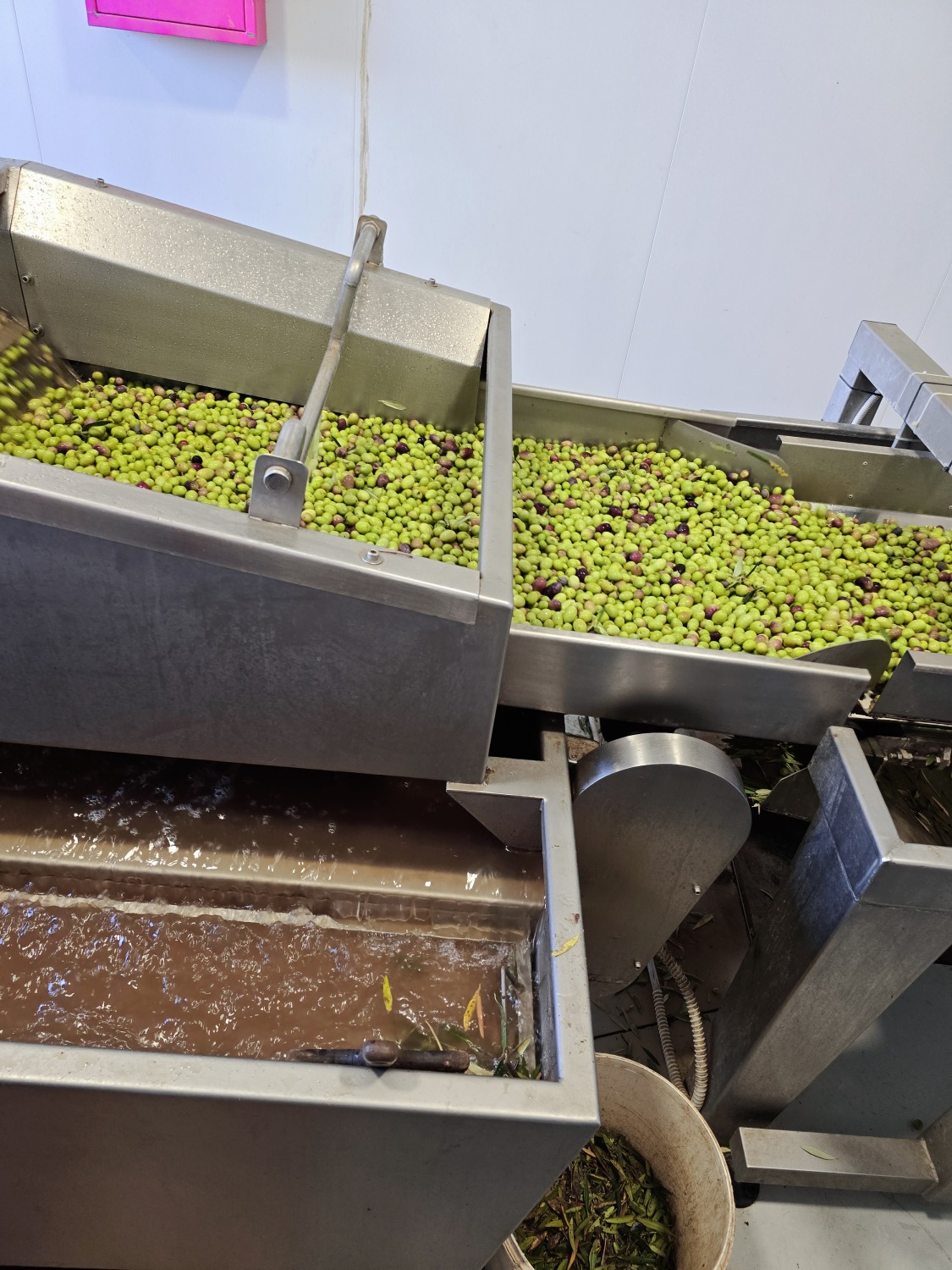 Arī mūsu grupa devās uz Mudanjas ciematu, lai apmeklētu ģimenes uzņēmumu Famelia Papastergiou, kas nodarbojas ar olīvu audzēšanu un pārstrādi. Saimniecības laukos augošie olīvkoki jau ir 60 gadu veci. Pamatā tiek audzētas trīs olīvu šķirnes, no kurām Halkidiki šķirnes olīvas ir vislielākās. No viena olīvkoka novāc aptuveni 50 kg olīvu. Tieši tobrīd reģionā bija karstākais ražas novākšanas laiks, kad trūkst darbaspēka. Šī iemesla dēļ sezonas laikā reģionā iebrauc ap 14 000 viesstrādnieku no apkārtējām valstīm. Ir šķirnes, kuras novāc mehanizēti, bet pārējās novāc ar rokām. Sākumā tikai gatavās olīvas, no kurām eļļa ir viskvalitatīvākā. Pēc dažām dienām vāc nākamās atkarībā pēc gatavības pakāpes. Jo negatavākas olīvas, jo eļļa ir rūgtāka. Katras šķirnes olīvas garšo savādāk.