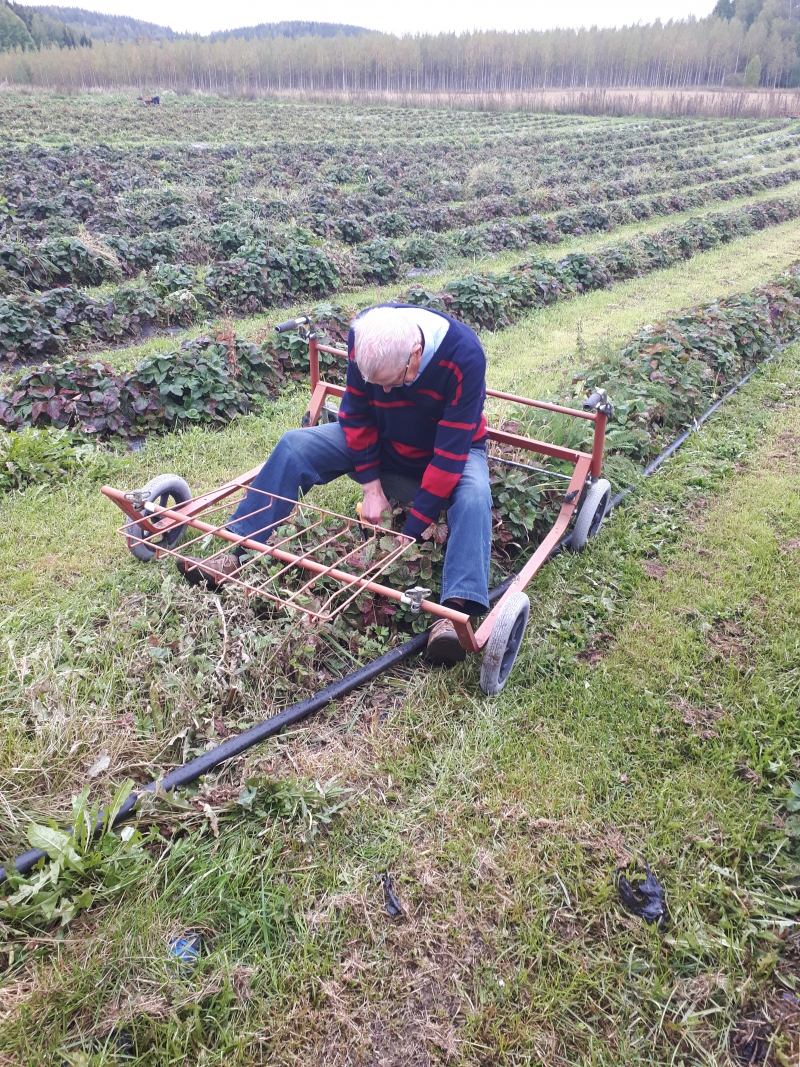 Rūpīgi pārdomātos laukos taisnās rindās aug ogulāji un zemenes. Gatavojoties ziemai, tiek retināti ogulāju zari, appļauta zāle, ravētas zemenes. Zemeņu audzēšanai saimnieks ir pielāgojis palīgiekārtas, tehniku, lai vieglāk būtu novākt ogas un vēlāk arī ravēt stādījumus. Visā apsaimniekotajā teritorijā notiek pilienveida laistīšana pie katra stāda. Ir arī padomāts par ūdens smidzināšanu pret salnām. Jāpiezīmē, ka abi saimnieki ir 73 un 74 gadus veci, bet ļoti optimistiski un darbīgi. Intensīvā ražas novākšanas laikā ierodas 4 palīgi – kaimiņu jaunieši. Lai gan augsne ir mālaina, ogas ir lielas, saldas un pieprasītas.