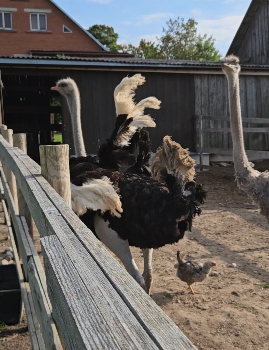 Gadās, ka saimniecību apciemo arī kāds meža dzīvnieks, agrāk lapsas aiznesa vistas no pagalma, nebaidījās pat no suņa. Rihards: “Nezinām, vai tā ir tikai sakritība, bet, kad saimniecībā uzradās strausi, šķiet, ka lapsas pie mums parādās daudz retāk. Šobrīd vairāk jāuzmanās no tiem, kas lidinās gaisā, jo ik pa laikam parādās kāds piekūns vai vanags.” Pirms pāris nedēļām bijis atgadījums, ka pārdrošs piekūns paķēris cāli, bet Gustavs varonīgi izglābis cālēnu.