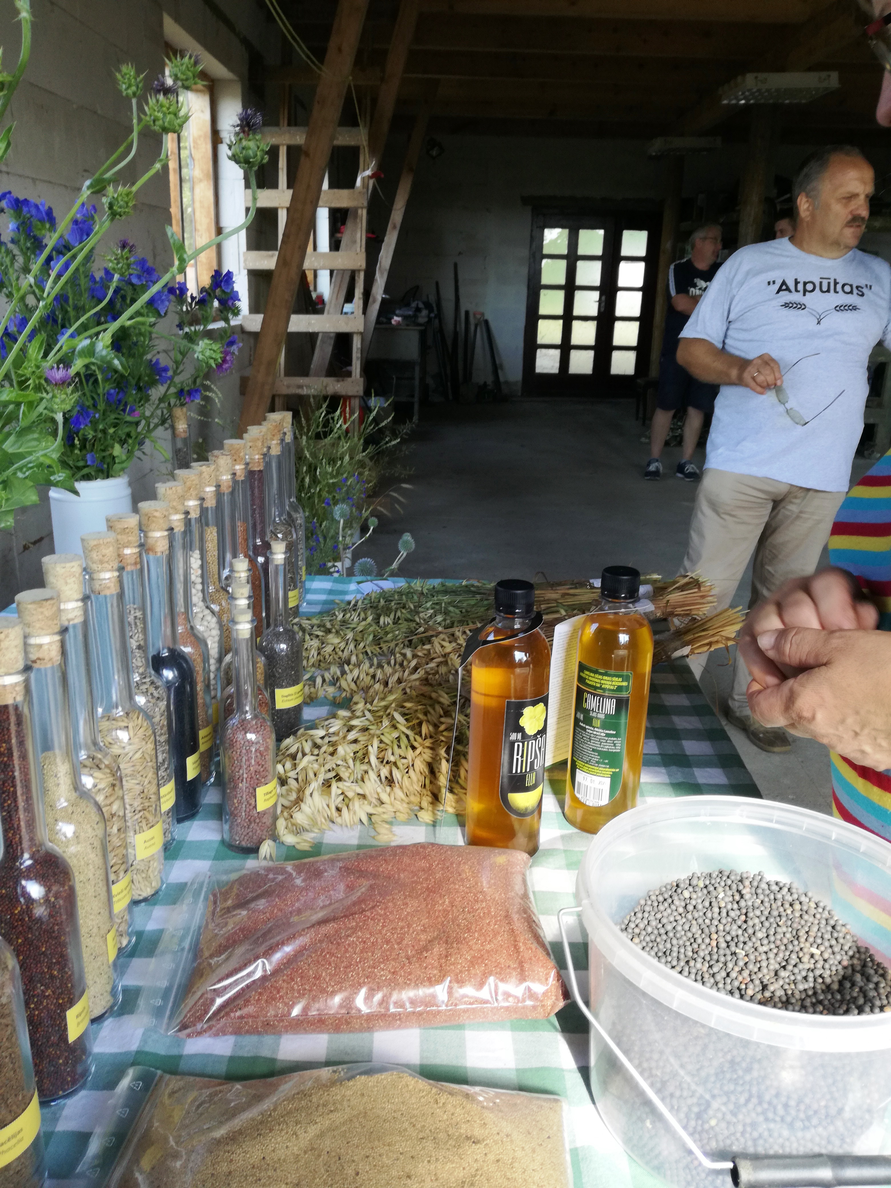 Brauciena dalībniekus Bērzaunes “Atpūtās” sagaidīja saimnieks Ivars Ķirps ar stāstījumu par saimniecības izveidošanu, gūto pieredzi un atziņām daudzu dažādu kultūru audzēšanā. Saimniecības attīstība nav noritējusi gludi un bez sarežģījumiem. Bioloģiskā saimniekošana prasa daudzu nosacījumu ievērošanu, no vairāku kultūru audzēšanas nācies atteikties. Saimniecības lauki ir nelieli, 350 ha izvietoti 105 laukos. Šogad tiek audzētas 18 kultūras, bet citos gados audzējamo kultūru skaits ir svārstījies no 20-30: auzas, rudzi, zirņi, vasaras un ziemas vīķi, āboliņš, griķi, ripsis, amarants, mārdadzis, facēlija, daglītis, sinepes, idra, ķimenes, ežziede, koriandrs un vairākas citas. Kaņepes un linus saimnieks neiesaka audzēt. Lielākās grūtības sagādā nezāļu apkarošana un novākšana. I. Ķirps iesaka audzēt maksimāli vairākas kultūras kopā un maksimāli izmantot pasējas. Brauciena dalībniekiem ir iespēja apskatīt saimniecības laukus. Vienā no tiem nesen nokults ripsis, tur tagad aug āboliņš, citā laukā aug zirņi ar āboliņu, rudzi ar vīķiem. Sēklu gan saimnieks iesaka pirkt sertificētu, tad ir pavisam cita raža un kvalitāte. Produkcija tiek realizēta Lietuvā un “Eļļas ķēķī” Rīgā. Brauciena dalībniekiem bija iespēja apskatīt graudu kalti, sēklu un graudu šķirošanas un attīrīšanas iekārtas, uzglabāšanas noliktavu Madonā. Ivars Ķirps slavē savus darbiniekus, agronomu, viņa paša ziņā ir ekonomiskie aprēķini un lēmumu pieņemšana. Jebkurā brīdī viņš ir gatavs pārorientēties un uzsākt darīt ko citu.