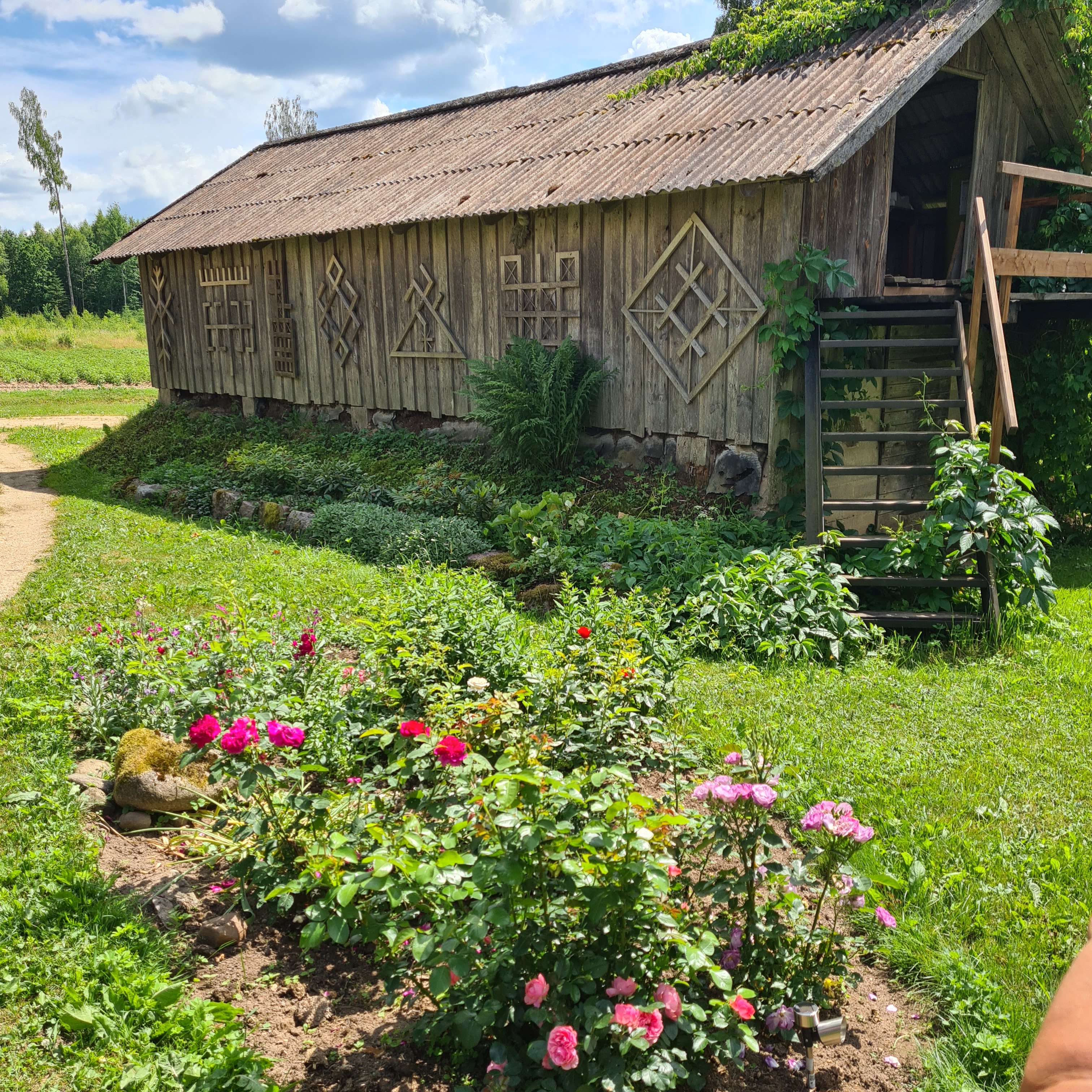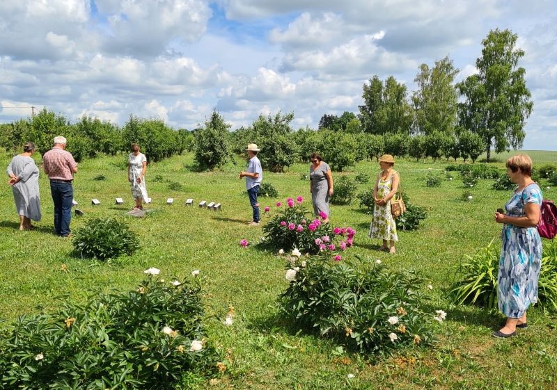 Nonākot pie augļu dārza, vīri devās līdzi saimniekam aplūkot saules paneļus un viņu sīki iztaujāja par tiem. Bet dāmas iemuka saimnieces peoniju dārzā. Peonijas ir saimnieces lepnums un sirdslieta, kopā ap 200 šķirnēm.