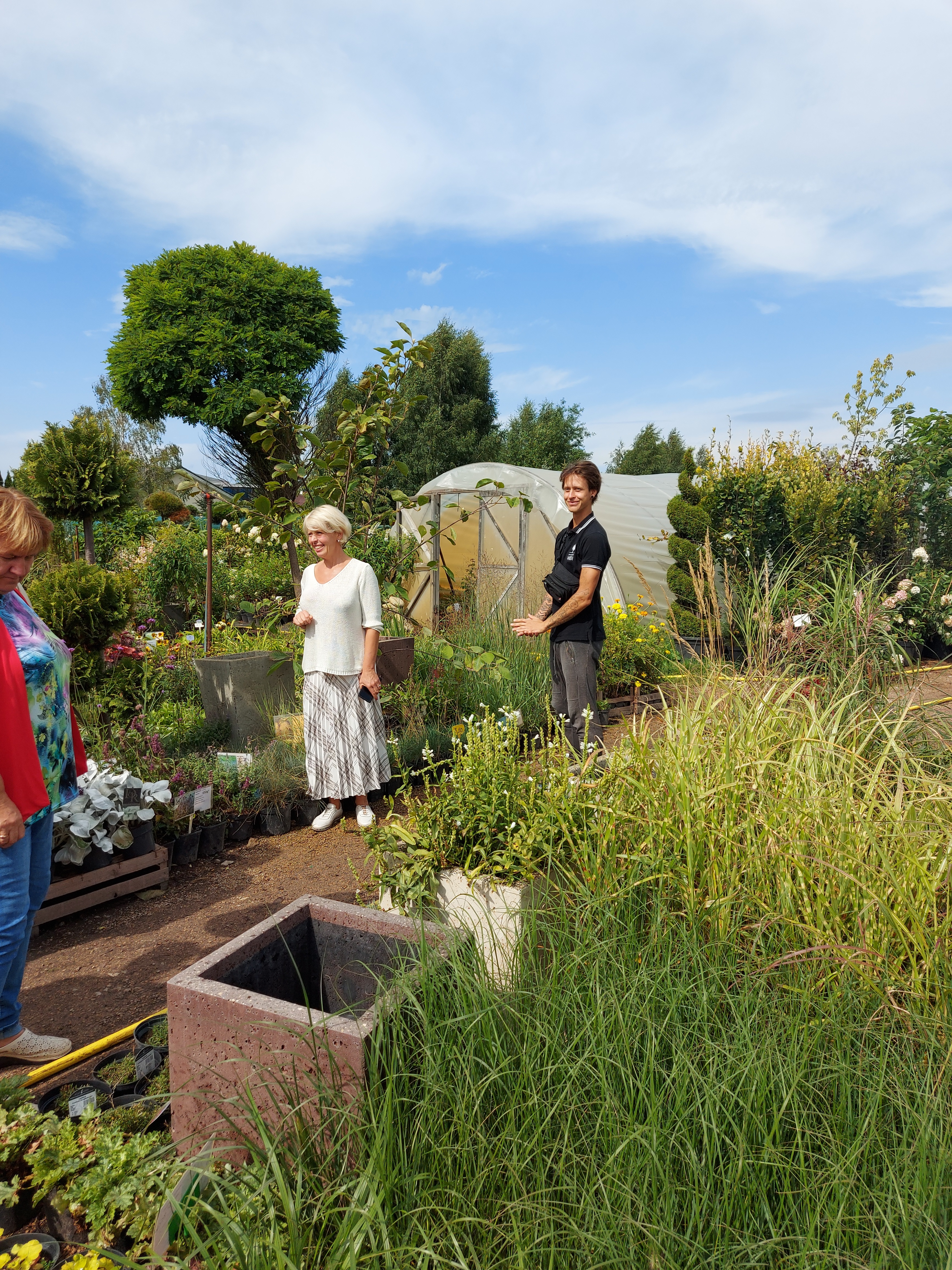“Dārzs zem Saules” ir ģimenes uzņēmums – maza stādaudzētava Mārupē, kur pircējiem tiek piedāvāts plašs stādu un koku sortiments. Mīlestība un aizraušanās ir hortenzijas, lepnums – veidotie un cirptie koki Bonsai, dažādas tūjas. Moto ir palīdzēt katram klientam izveidot viņa sapņu dārzu. Saimniekošanu pamazām pārņem jaunā paaudze. Saimnieces Antras Blūmas znota Emīla aizraušanās ir magnolijas. Uzzinājām par magnoliju šķirnēm, ka Latvijā ieteicamās ir “mazo meiteņu magnolijas”, piemēram, ‘Sjūzena’ u. c., kas ir ļoti izturīgas. Tas, ka magnolijas jāstāda skābā augsnē, esot mīts. Gluži pretēji – tās jāstāda sārmainā augsnē. Uzzinājām, par mēslošanu, ka vasaras vidū tās ieteicams mēslot ar fosforu. Magnolijas neiesaka stādīt tiešā saulē, bet gan mazliet ēnā. Uzzinājām, ka ir arī mūžzaļās magnolijas. Par hortenziju apgriešanu (piemēram, jo zemāk nogriež, jo lielāki ziedi), apsakņošanas/augšanas stimulatora Regriner izmantošanu un daudz ko citu. Par jautājumiem augu stādīšanā, kopšanā, uzņēmums veido video pamācības. Ar degsmi un aizrautību saimnieki stāstīja par savu darbu un atbildēja uz mūsu uzdotajiem jautājumiem. Liela veiksme mums katram ir darīt darbu, ar kuru varam lepoties un kas mums sagādā prieku!