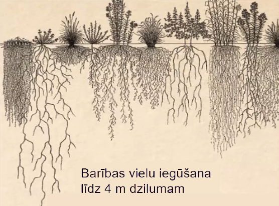 • nosedz augsnes virskārtu, pasargājot augsni no dažādu degradējošu faktoru ietekmes – ūdens, vējš,