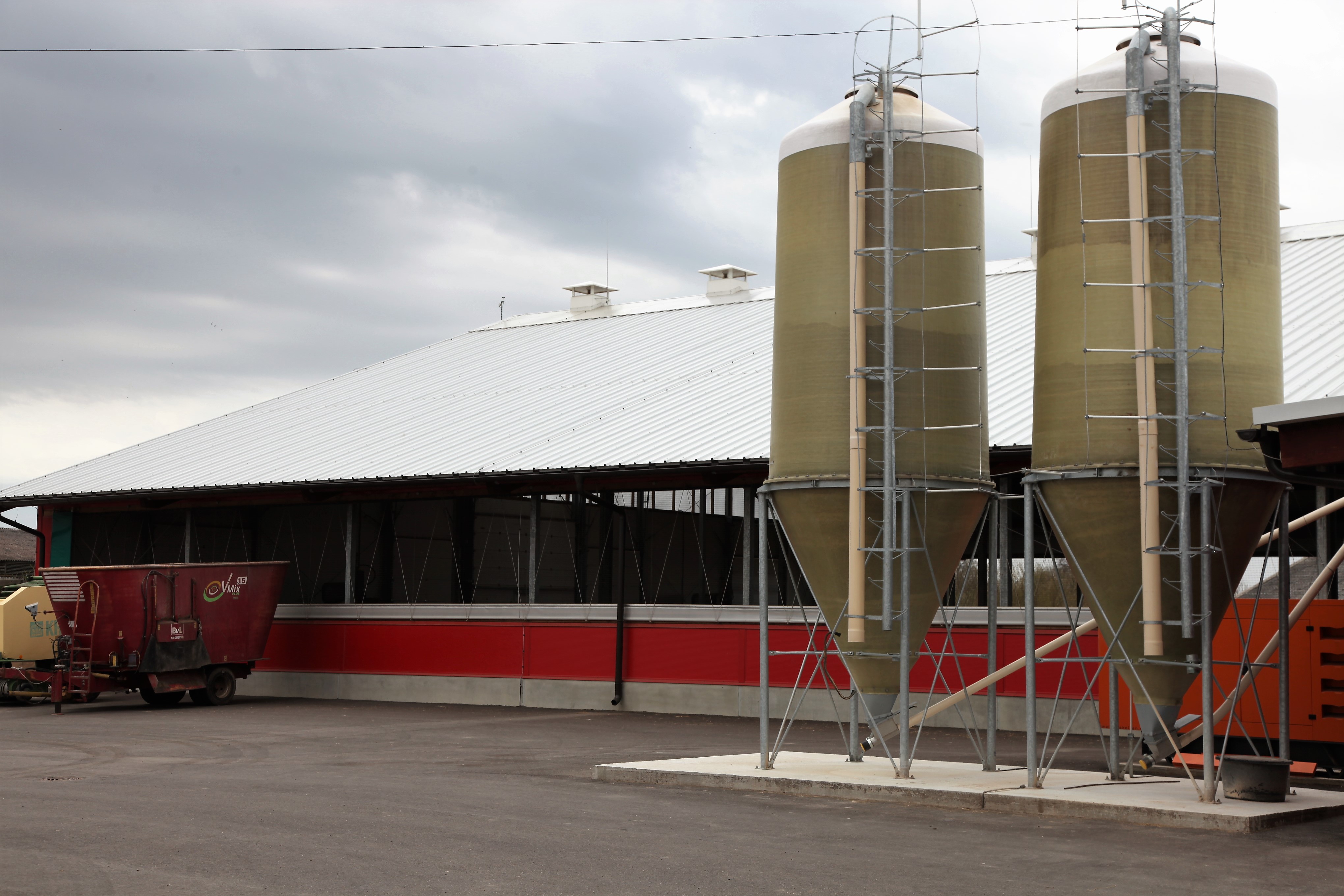 Šeit esam realizējuši divus projektus – ferma 289 stāvvietām govīm ar 3 robotiem un mēslu krātuve izmaksāja 1,9 miljonus eiro, kopā ar otru projektu, kur iegādājāmies ceturto robotu un izbūvējām skābbarības bedres, sanāk 2,1 miljons eiro. LAD līdzfinansējums – 809 tūkstoši eiro. Mums ir arī mēslu krātuve, ko izbūvējām no jauna, ar pārsegumu, lai neizplatās smakas.