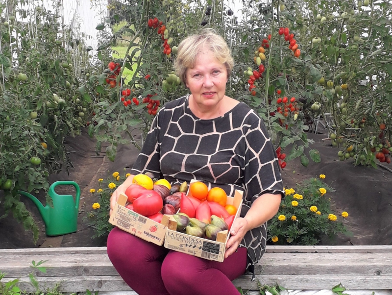Šogad siltumnīcās ir ap 400 tomātu šķirnēm. Kopā ar lauka tomātiem šķirņu skaits tuvojas 600. Jaunumi ir katru gadu, bet ir šķirnes, no kurām atsakos. Audzēju un vērtēju noturību pret slimībām, garšas īpatnības. Trīs gadus izmēģinu, un tad ir iespēja reģistrēt sēklu katalogā. Man ir dotas arī šķirnes izmēģināšanai, kas atvestas no braucieniem. Tā reiz no Gruzijas atvestajiem tomātiem vēl joprojām viena šķirne saglabājusies. Vecākā šķirne kolekcijā ir kopš laika, kad nopirkām māju, no 1986. gada. Tad šķirnei nebija nosaukuma, vesta no Lietuvas. Kad sāku sakārtot reģistrācijas dokumentus, vēlējos nosaukt pārdevējas vārdā, bet nevarēju, jo tāda šķirne jau bija. Arī mazdēla vārdā šķirne Francijā jau bija reģistrēta. Tā nu vīrs tika pie savas šķirnes ‘Egons’. Draugi dāvinājuši un aug ‘Kārumniece Natalī’, tā ka manā vārdā arī šķirne ir.