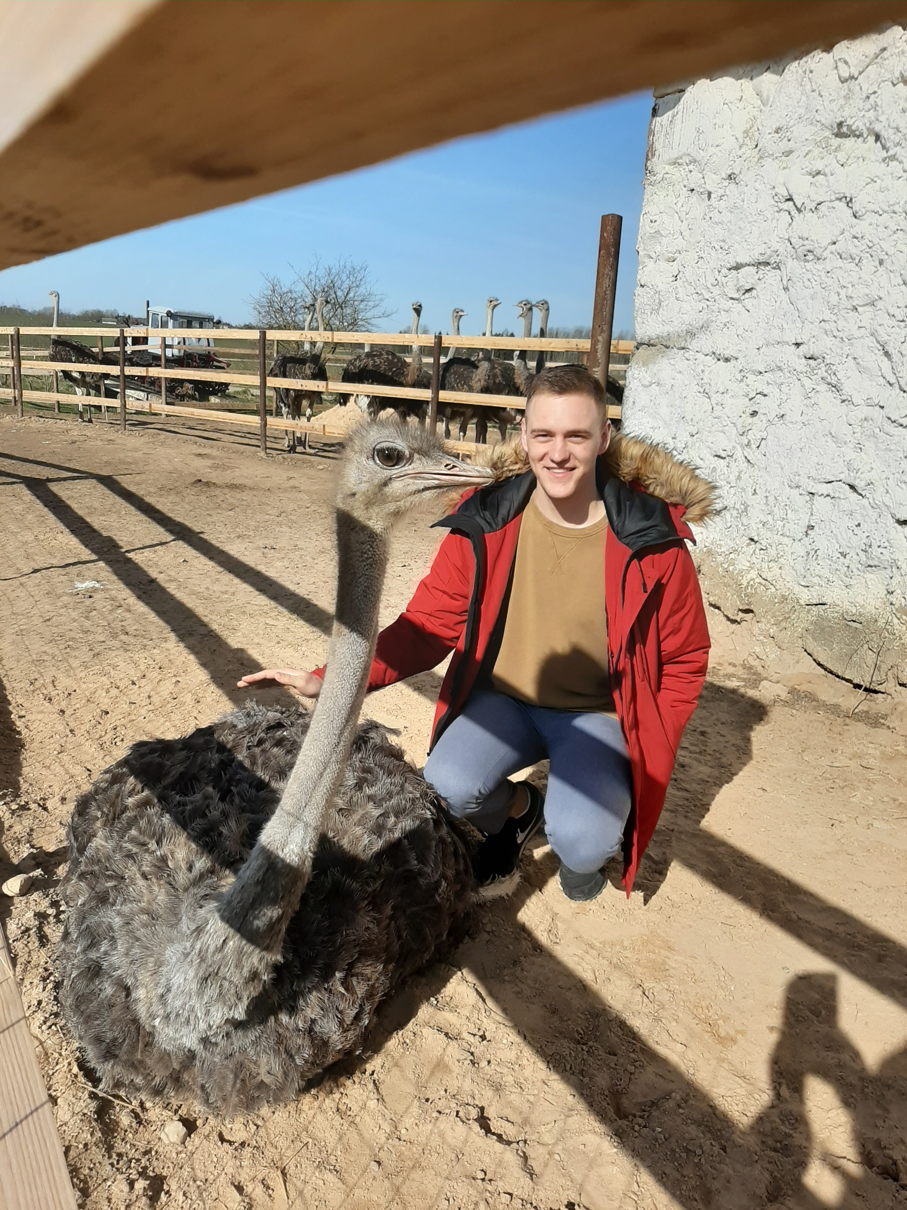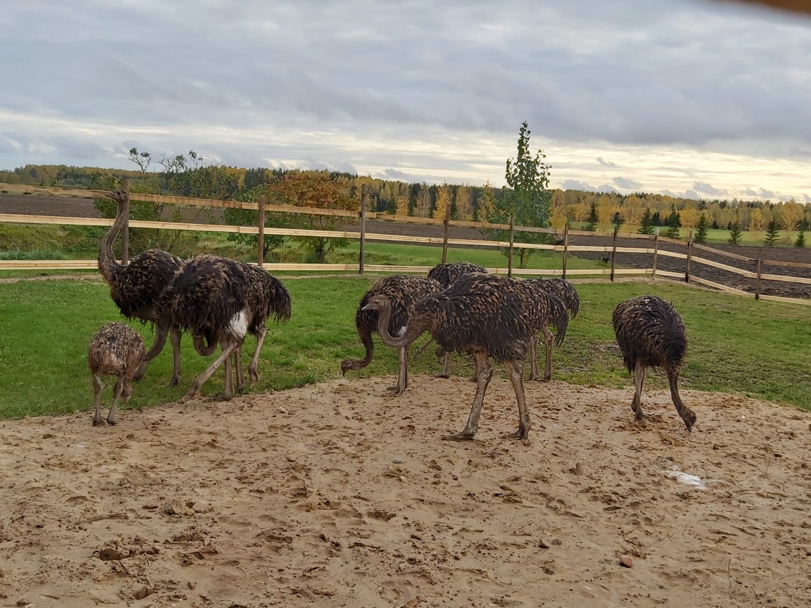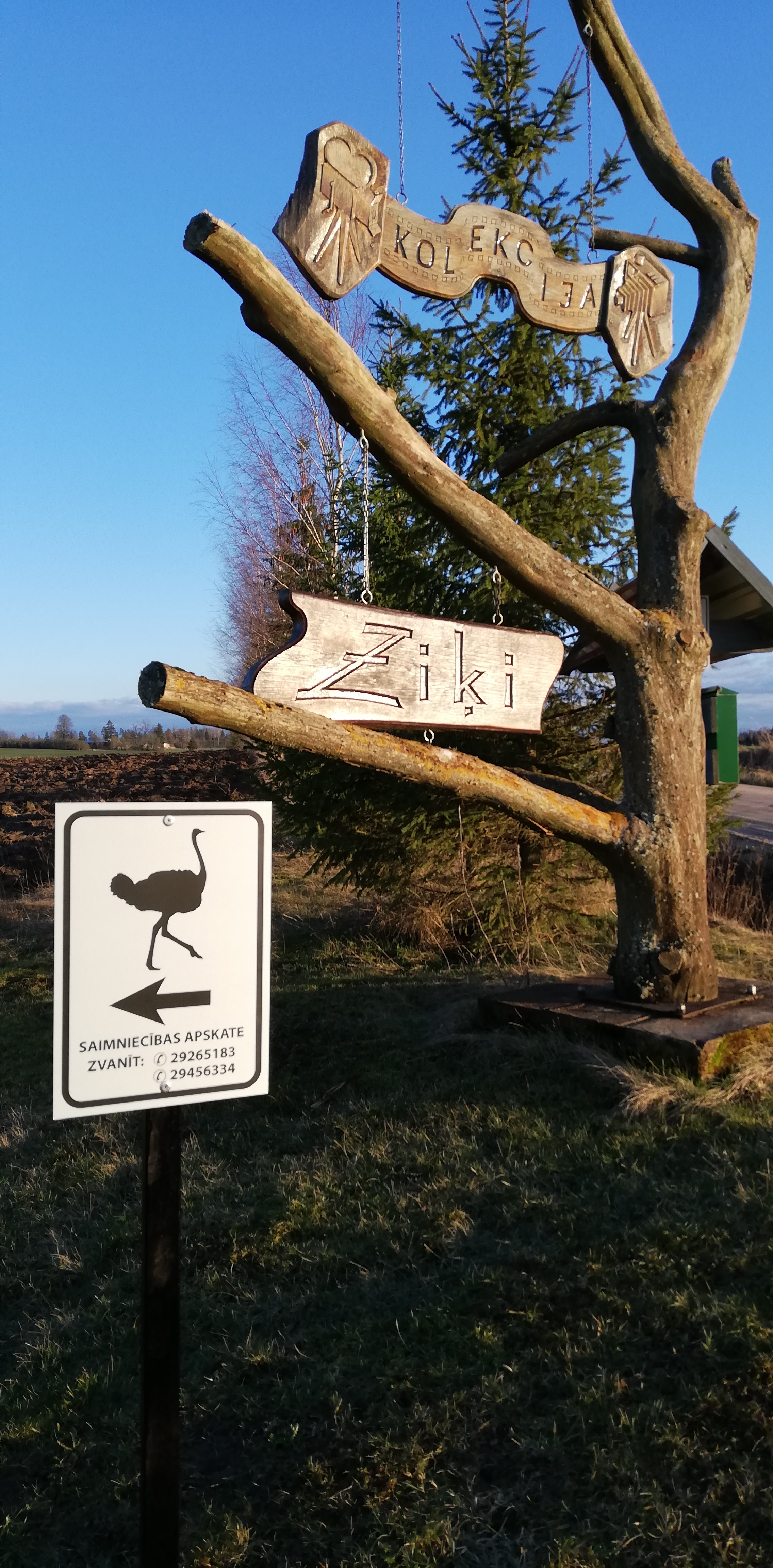Intars stāsta: “Vienu gadu, Druvas vidusskolā palīdzot vadīt vasaras nometni, ar bērniem braucām ekskursijā uz Latvijā lielāko strausu fermu Kuldīgas novadā. Iepatikās man tie strausi un izlēmu – tas būs tas, ar ko nodarbošos. Pagājušajā vasarā par paša sakrāto naudu nopirku pirmos 11 putnus. Vecāki uzcēla jaunu govju kūti, vecās kūtis palika tukšas. Vecāki un radi arī palīdzēja ar telpu pielāgošanu strausiem. Pērn iegādātos 11 strausu cālīšus pats izaudzēju par lieliem, skaistiem putniem. Droši varu pie viņiem ieiet aplokā. Jaunuļiem ir iespēja visu gadu dzīvot gan kūtī, gan āra aplokā. Interesanti, ka maniem Āfrikas strausiem pagājušā gada vasarā labāk patika uzturēties kūtī, jo ārā bija ļoti karsts, bet ziemā tie labprātāk dzīvoja ārā, aplokā. Šī gada zīmīgajā svētdienā (2020.02.02.) nopirku veselu ģimeni – vienu papu un divas mammas, kuras jau šogad dēj olas. Bija vajadzīgs nākamais atspēriena punkts, lai attīstītu savu biznesu. Šī ir astoņgadīga ģimene. Strausu mātītes olas sāk dēt tikai divu gadu vecumā, tēviņi dzimumgatavību sasniedz četros gados. Olas tirgošu un arī inkubēšu, lai iegūtu cālēnus. Pēc pāris gadiem piedāvājumā būs arī gaļa. Taču “Ziķos” šādam strausu pulkam vietas ir par maz, tādēļ netālu no Saldus vecāki iegādājās īpašumu, kurā attīstīšu savu biznesu. Manā strausu ganāmpulkā būs vismaz 100 putnu, cerams, ka tas būs lielākais Latvijā. Vēl esmu nolēmis attīstīt tūrismu. Opis ir kinoamatieris un mūsu saimniecībā izveidojis kino un foto vēstures ekspozīciju, tā varētu būt vienīgā Kurzemē. Līdz šim tūrisms nebija tik daudz attīstīts, šogad tam pievērsīšos vairāk. Ir strausi, ko parādīt, jo divas strausu ģimenes paliks te, ir govis. Ir arī divas fazānu ģimenes, ko opis man uzdāvināja.”