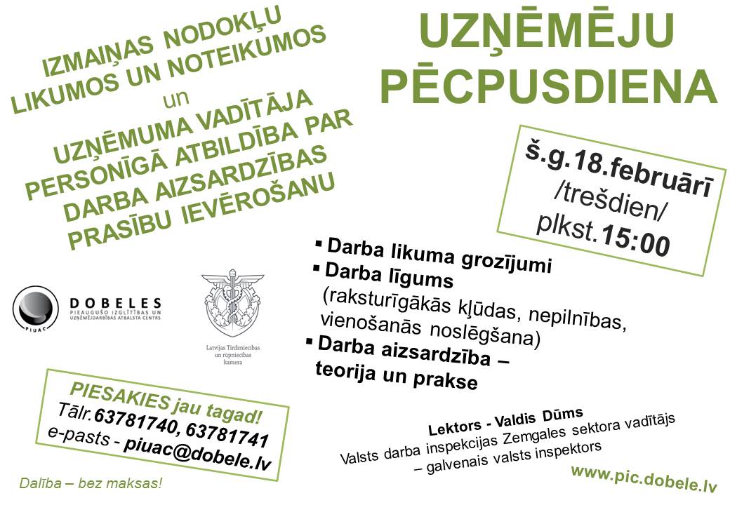 Datums: 18. Februāris, 2015Reģions: ZemgaleVieta: Dobeles Pieaugušo izglītības un uzņēmējdarbības atbalsta centrsAdrese: Skatīt karti lielākā izmērā Nozare: Uzņēmējdarbībawww.dobele.lv Reģions filtram: Dobeles novads