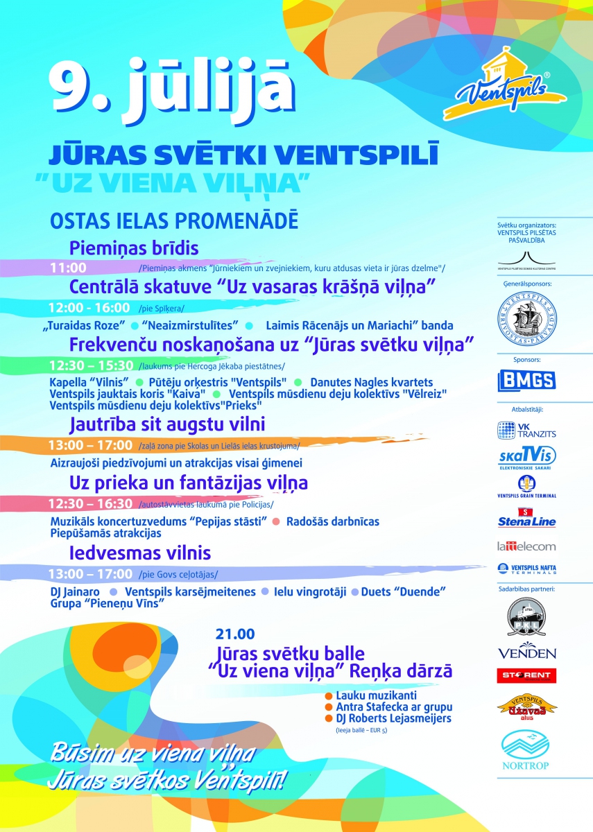 Datums: 9. Jūlijs, 2016 līdz 10. Jūlijs, 2016Reģions: KurzemeVieta: Ventspils Ostas promenādeAdrese: Skatīt karti lielākā izmērā Nozare: UzņēmējdarbībaSvētku programma:http://www.ventspils.lv/lat/izklaide_kultura/102584-juras-svetkos-ventsp... Kontaktinformācija: www.ventspils.lv; www.kulturascentrs.ventspils.lvReģions filtram: Ventspils