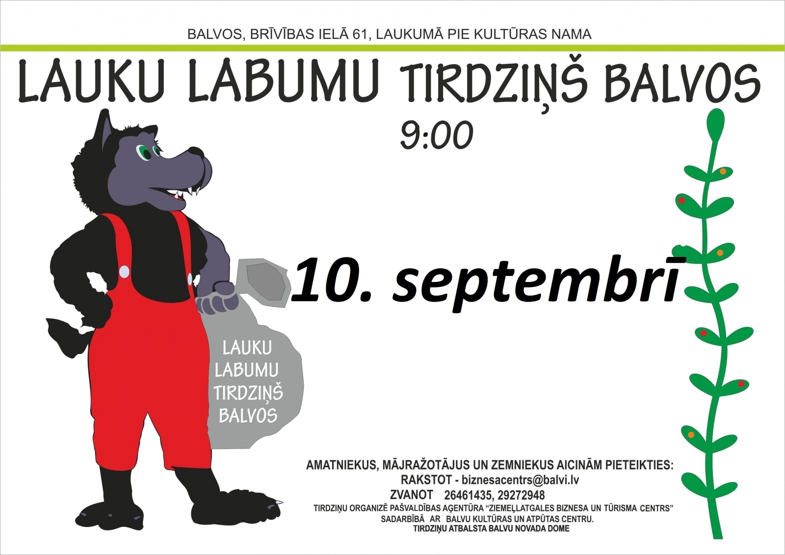 Tirdziņā piedalīties aicinām vietējos zemniekus, amatniekus un mājražotājus! Tirgotājiem pieteikšanās obligāta (līdz 8.septembrim) Ziemeļlatgales biznesa un tūrisma centrā: rakstot uz biznesacentrs@balvi.lv, turisms@balvi.lv vai zvanot 26461435, 29272948.