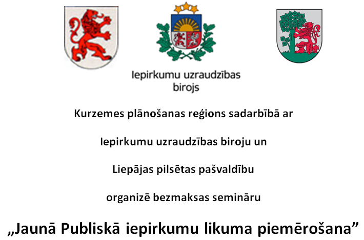 Kurzemes plānošanas reģions aicina uz bezmaksas semināru „Jaunā Publiskā iepirkumu likuma piemērošana”, kas notiks š.g. 23.martā Liepājā.