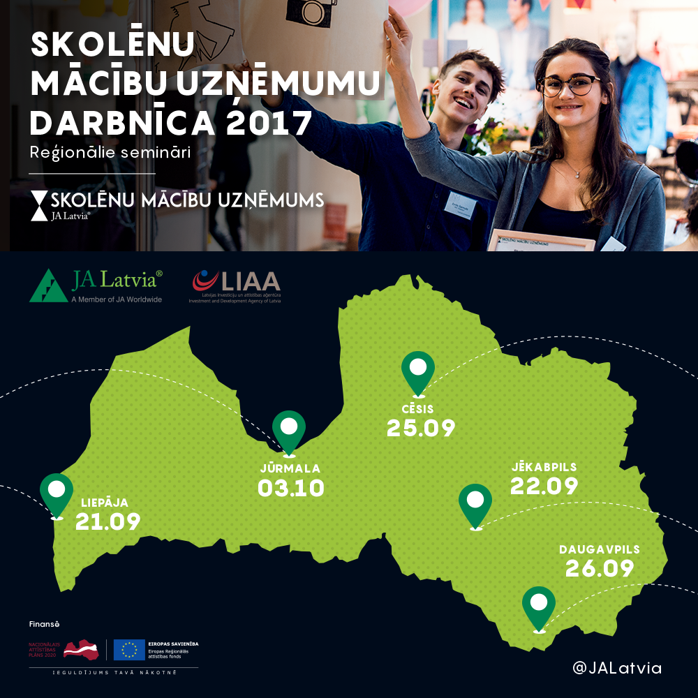 Junior Achievement Latvia un Latvijas Investīciju un attīstības aģentūra - LIAA aicina skolēnus un skolotājus visā Latvijā piedalīties reģionālajos semināros „Skolēnu mācību uzņēmumu darbnīca”.