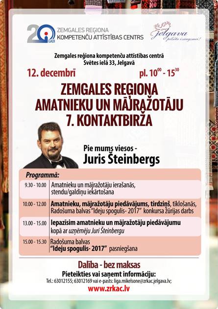 12. decembrī pl. 10:00 – 15:30 Zemgales reģiona kompetenču attīstības centrā notiks 7. Zemgales reģiona amatnieku un mājražotāju kontaktbirža.