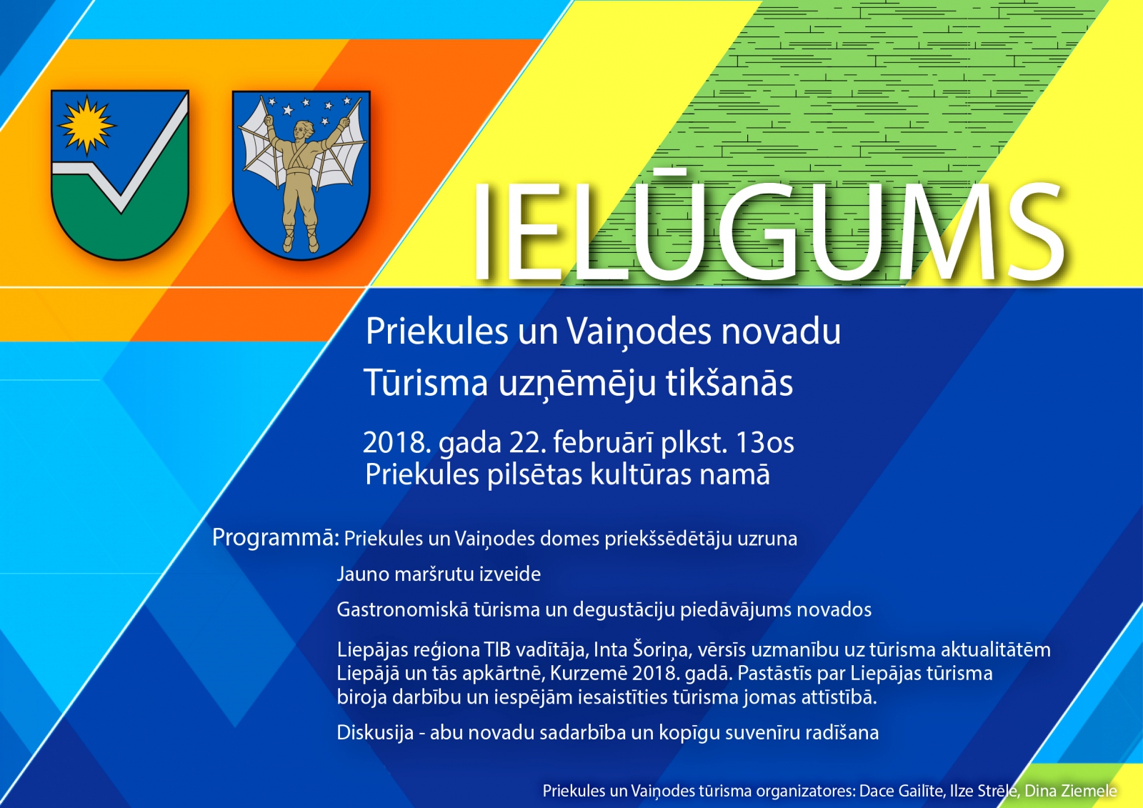 Priekules un Vaiņodes novadu Tūrisma uzņēmēju tikšanās 2018. gada 22. februārī plkst. 13os Priekules pilsētas kultūras namā.