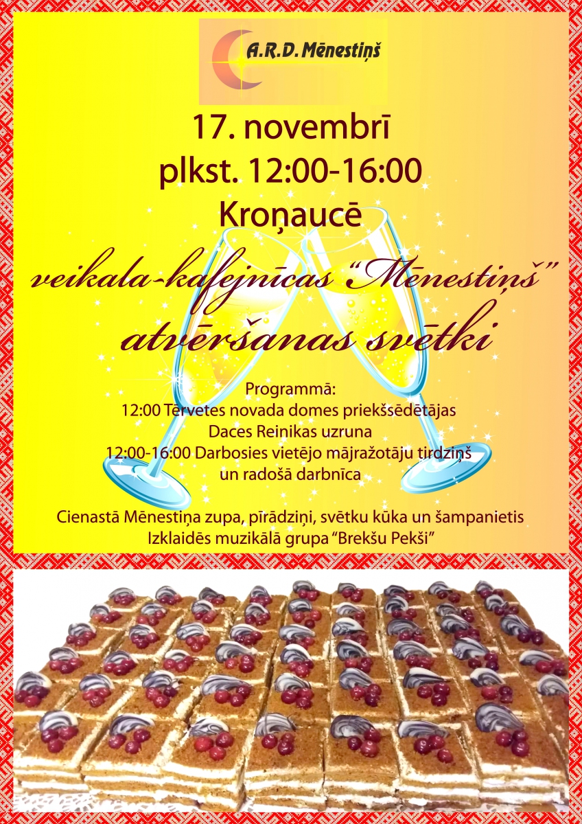 Datums: 17. Novembris, 2018Reģions: ZemgaleVieta: MēnestiņšAdrese: Skatīt karti lielākā izmērā Nozare: UzņēmējdarbībaKontaktinformācija: Anda Muciniece tel.27729988Reģions filtram: * Tērvetes novads