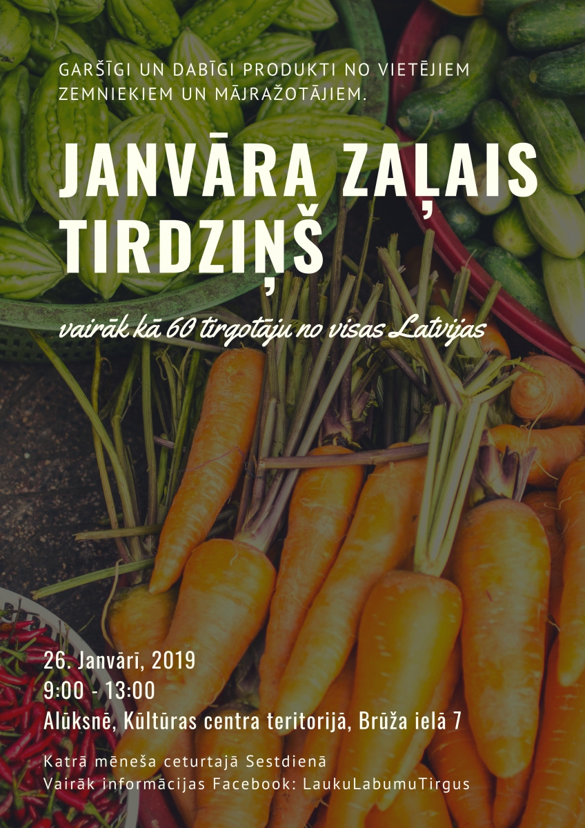 Alūksnē 26.janvārī tiek organizēts vietējo zemnieku un mājražotāju saražotās produkcijas tirdziņš. Laipni gaidīti pirkt un pārdot gribētāji.