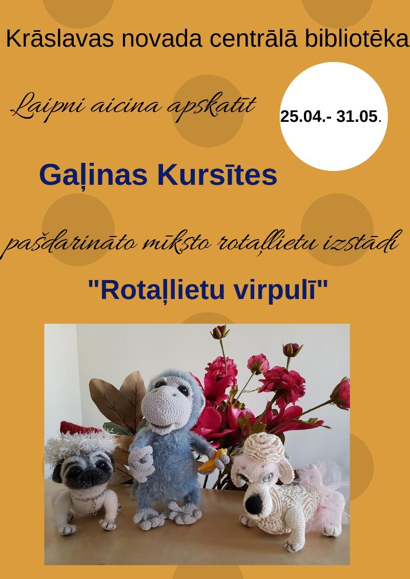 Laipni aicināti apskatīt Gaļinas Kursītes pašdarināto mīksto rotaļlietu izstādi "ROTAĻLIETU VIRPULĪ".